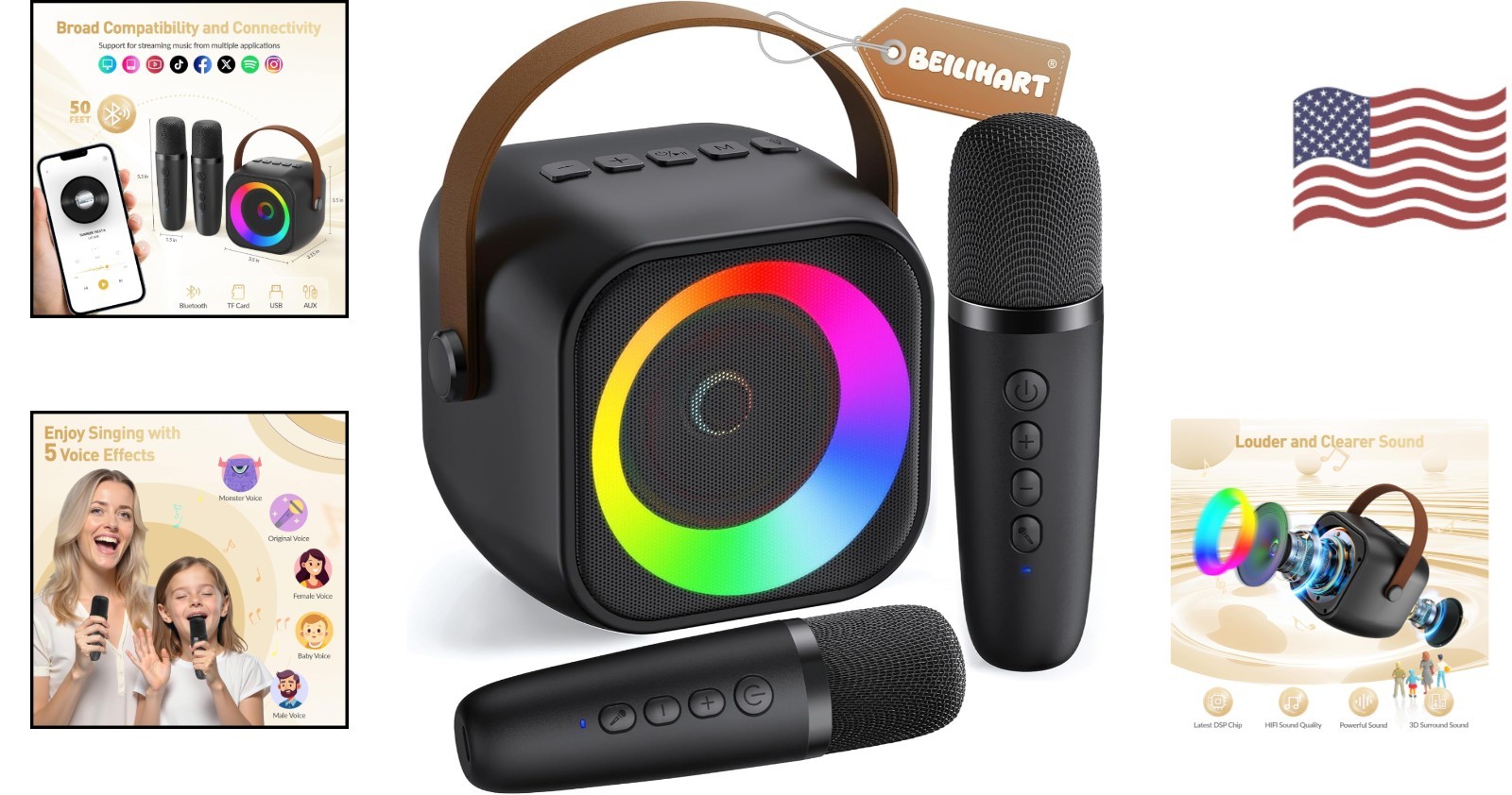 Bluetooth Karaoke Speaker with 8-10 Hour Playback Vibrant Lights for Parties