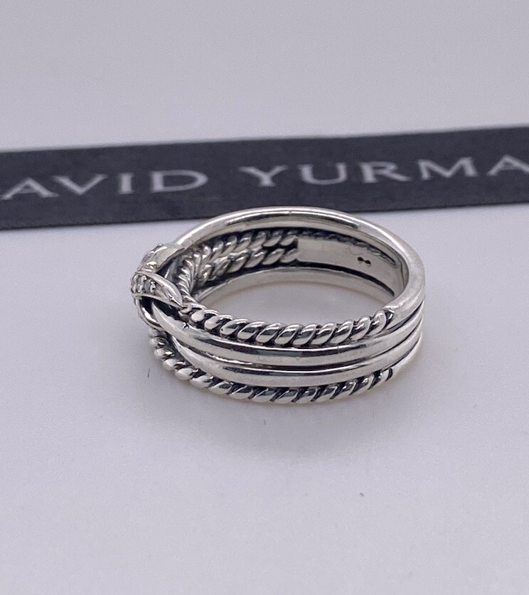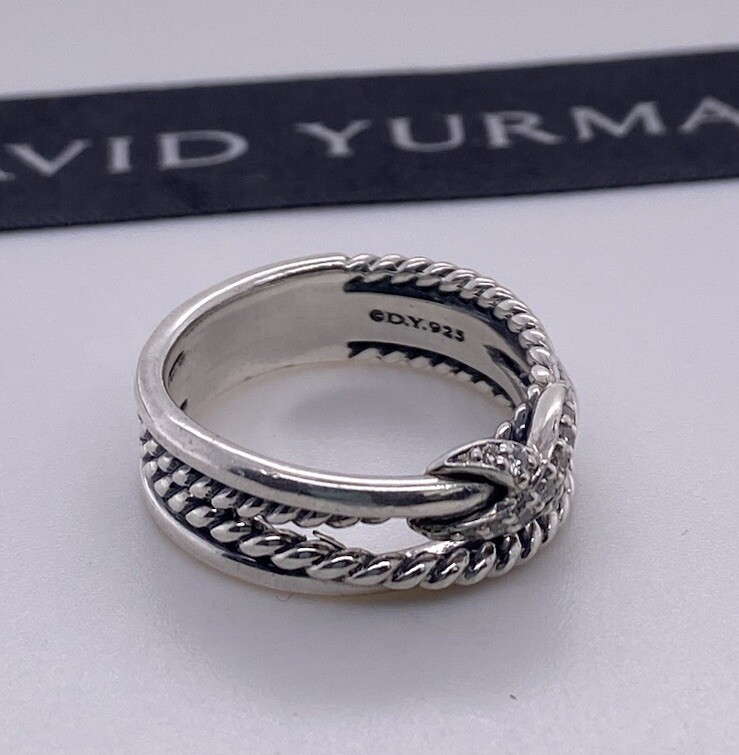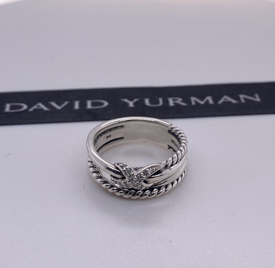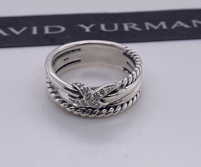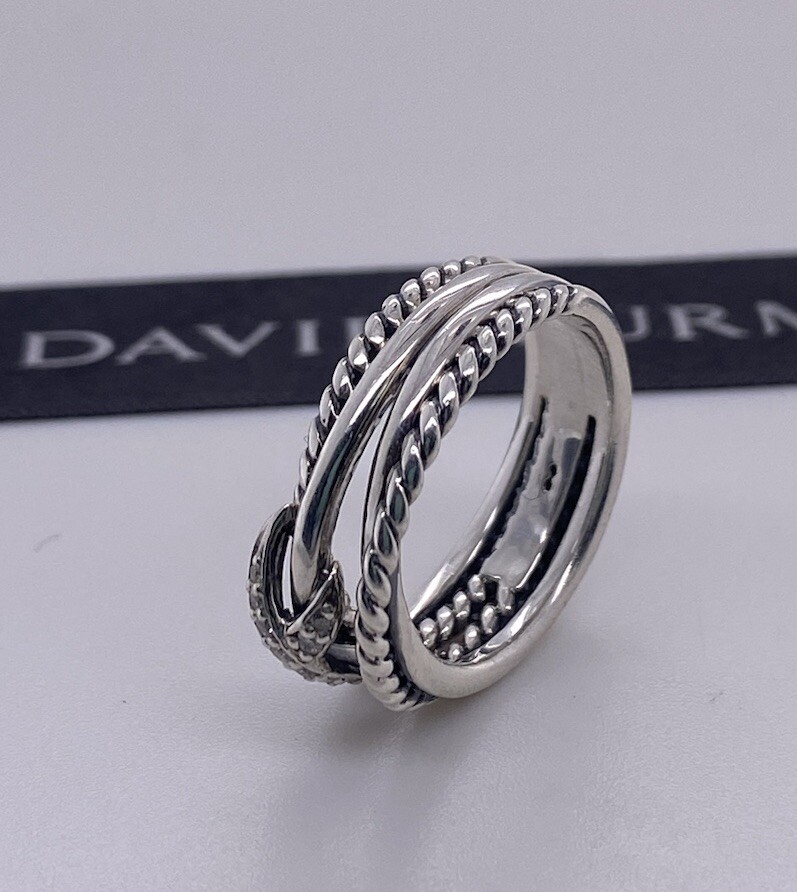 David Yurman 925 Sterling Silver X Crossover Ring with Diamonds Size 7
