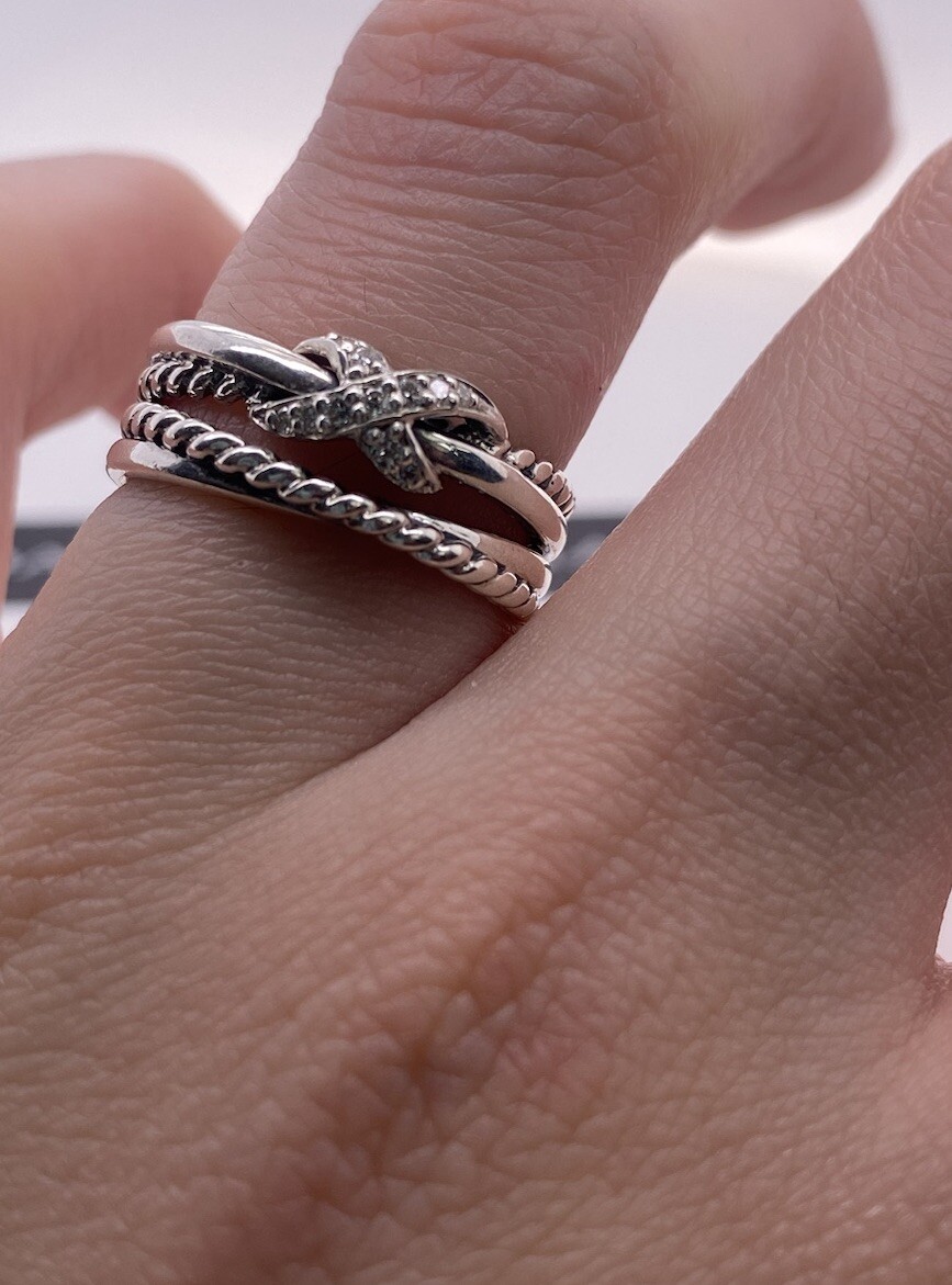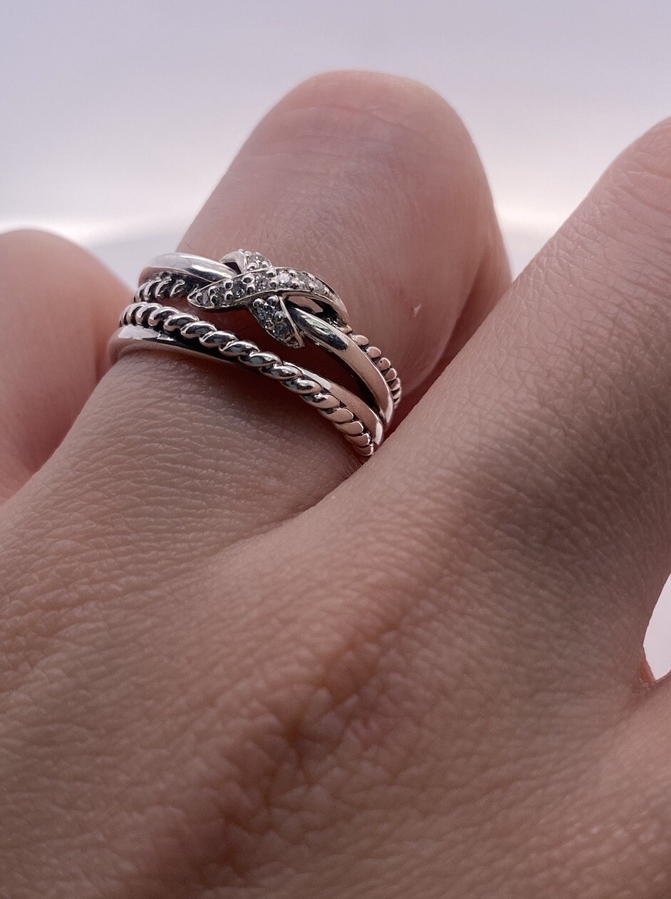 как выглядит David Yurman 925 Sterling Silver X Crossover Ring with Diamonds Size 7 фото