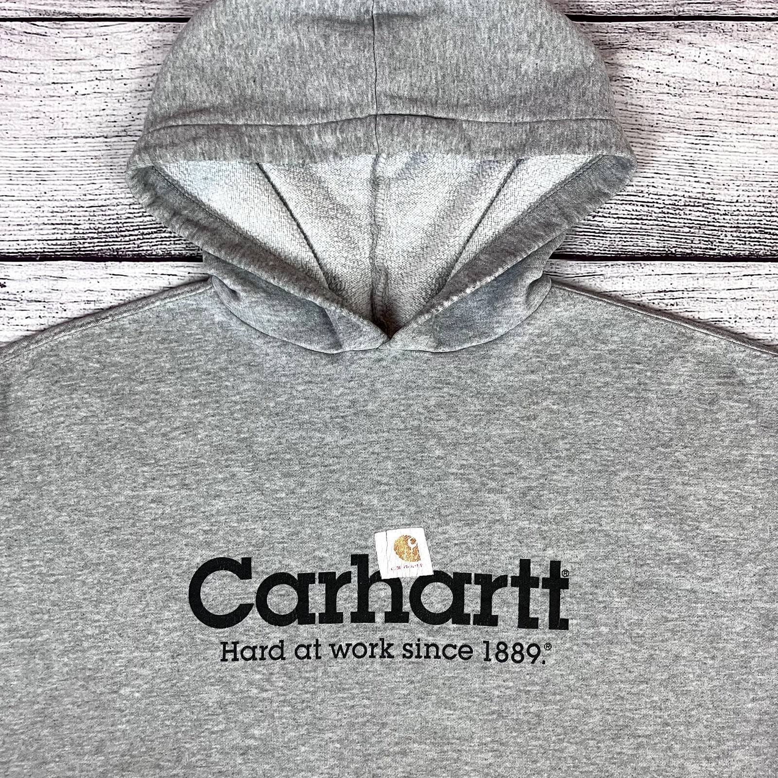 как выглядит Vintage 1990s Carhartt Spell Out Big Logo Hoodie size Mens Large Sweatshirt фото