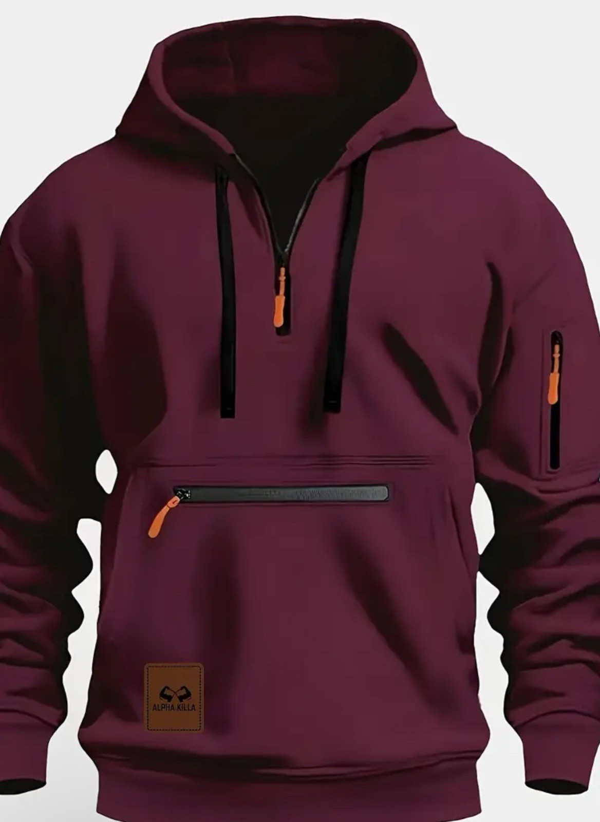 как выглядит Men s Casual Black Hoodie with Zipper Pockets, Lightweight Outdoor Wear фото