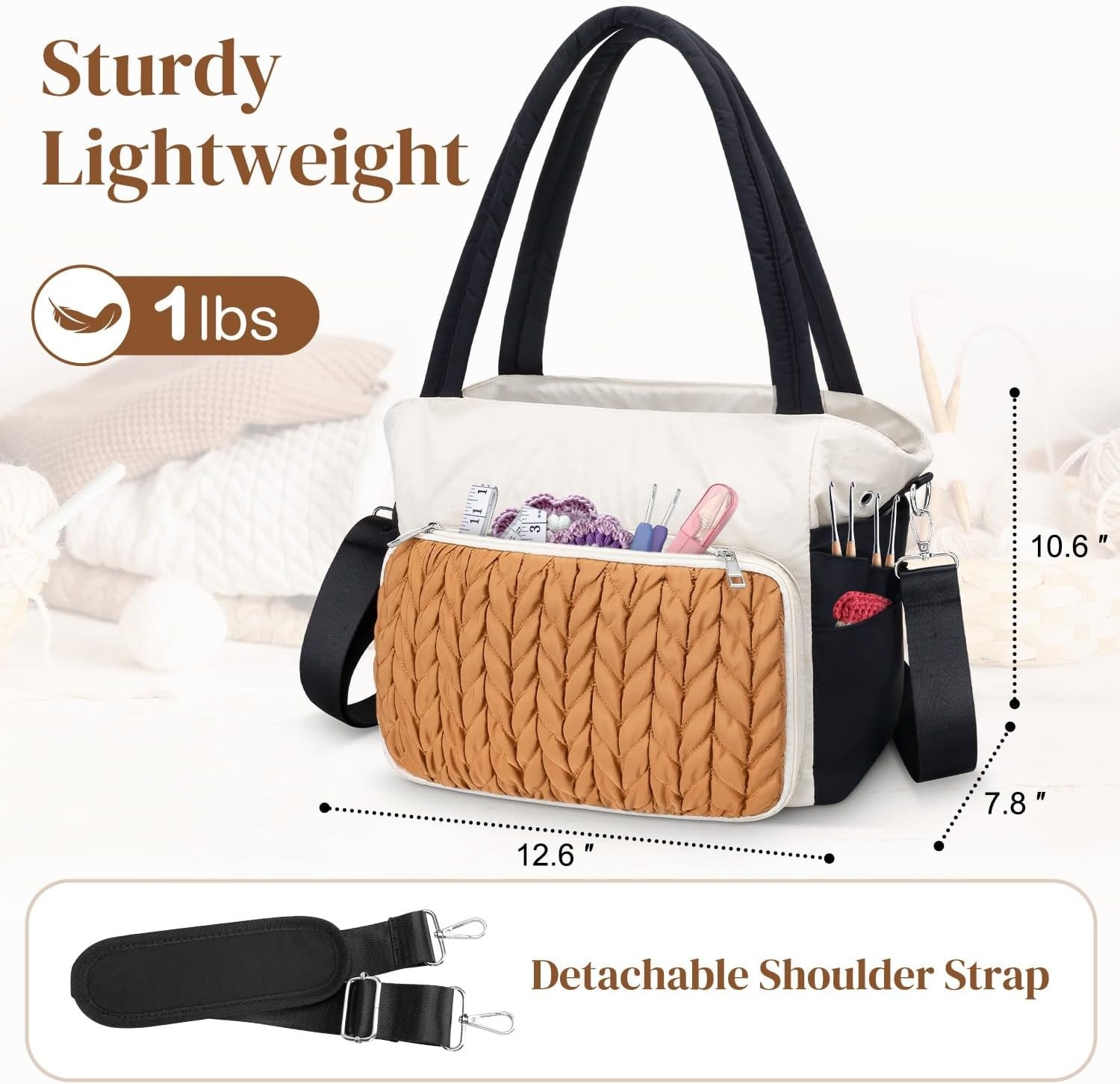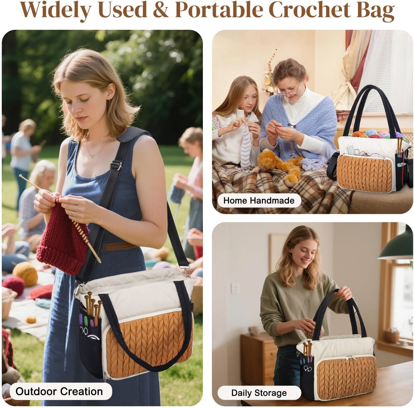 Spacious Knitting Crochet Bag - Multi-Pocket Organizer for Yarn Accessories