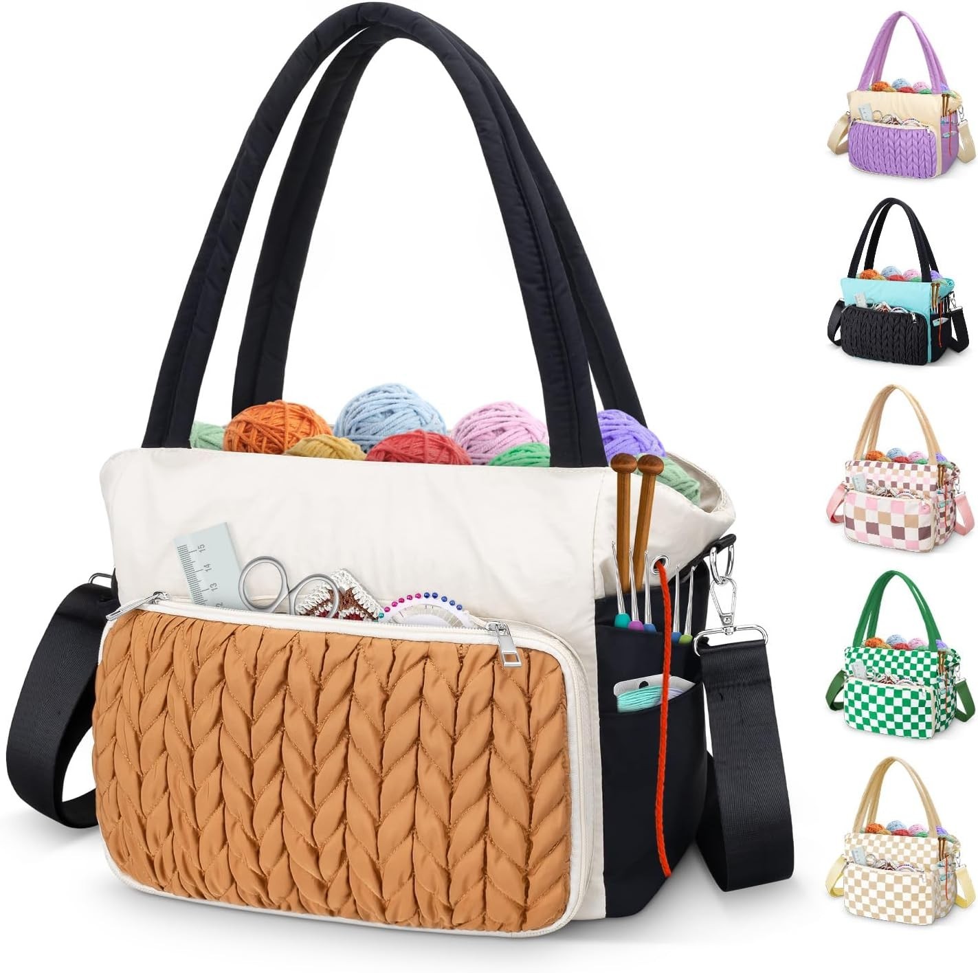 как выглядит Spacious Knitting Crochet Bag - Multi-Pocket Organizer for Yarn Accessories фото