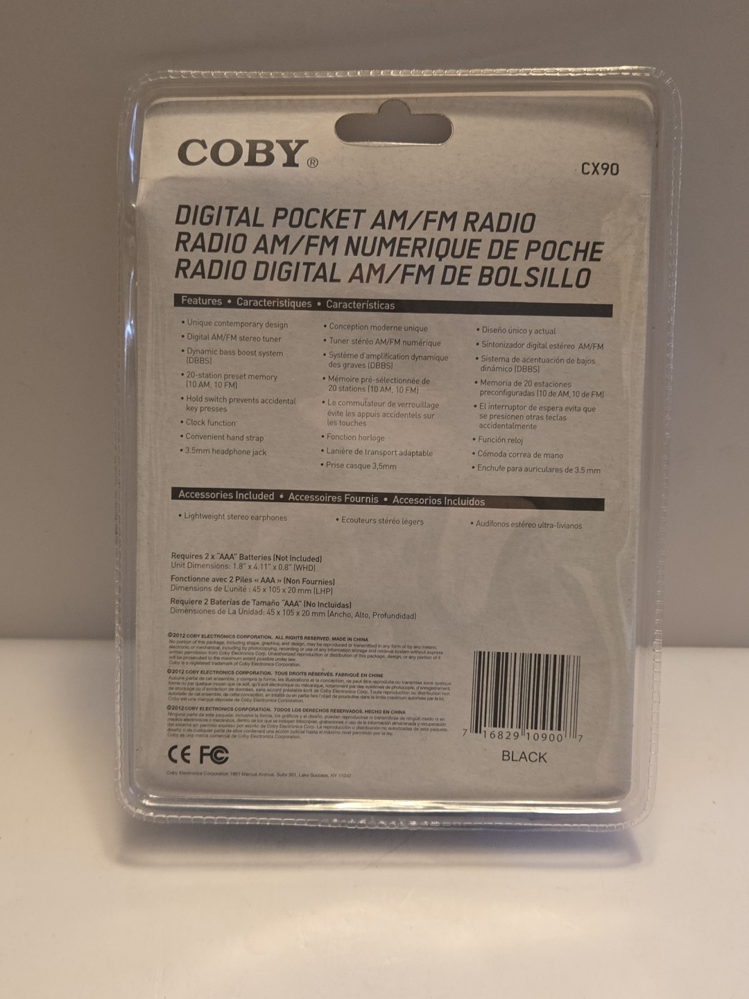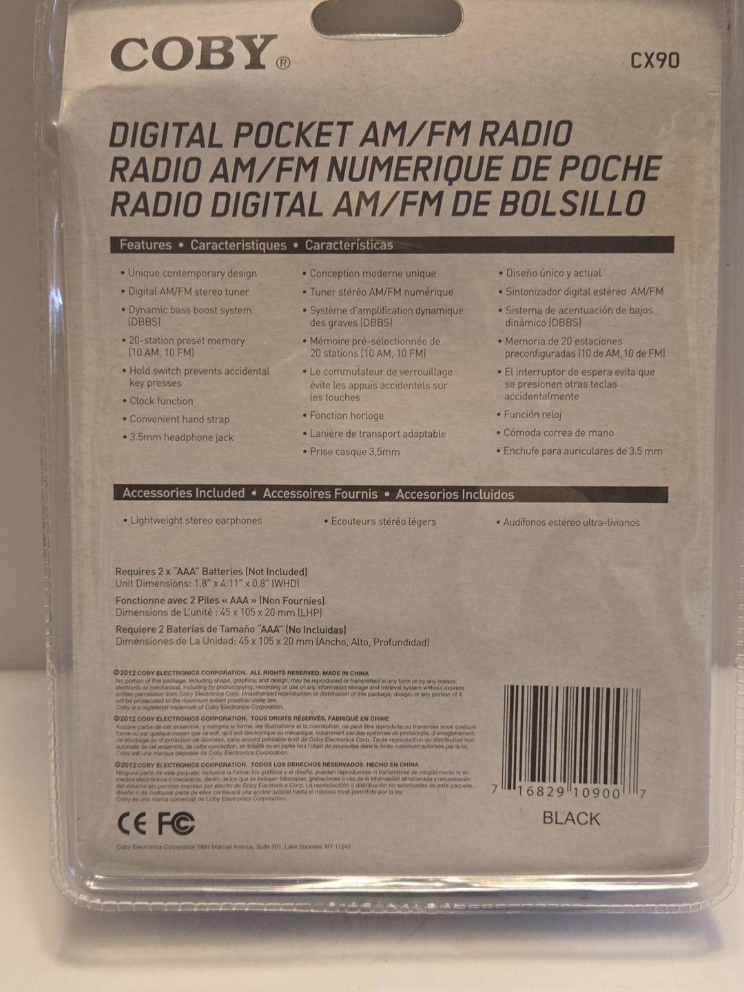 Coby Digital Pocket AM/FM 20 Station Silver and Black Radio CX90