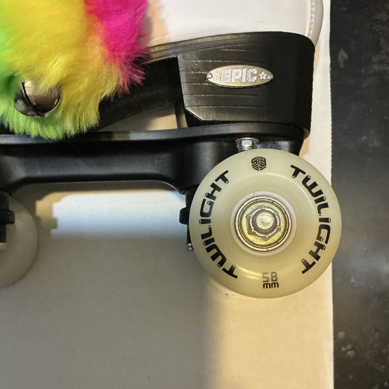 Epic Skates Twilight Roller Skates US 5 White 58mm Wheels Rainbow Laces Bag
