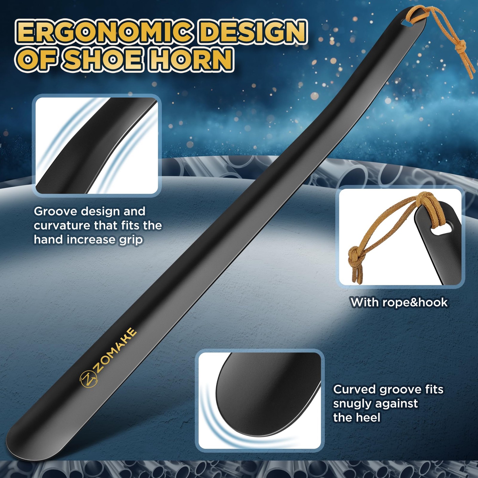 Shoe Horn Long Handle for Seniors Men Women,Metal Long Shoehorn for Boots,Sho...