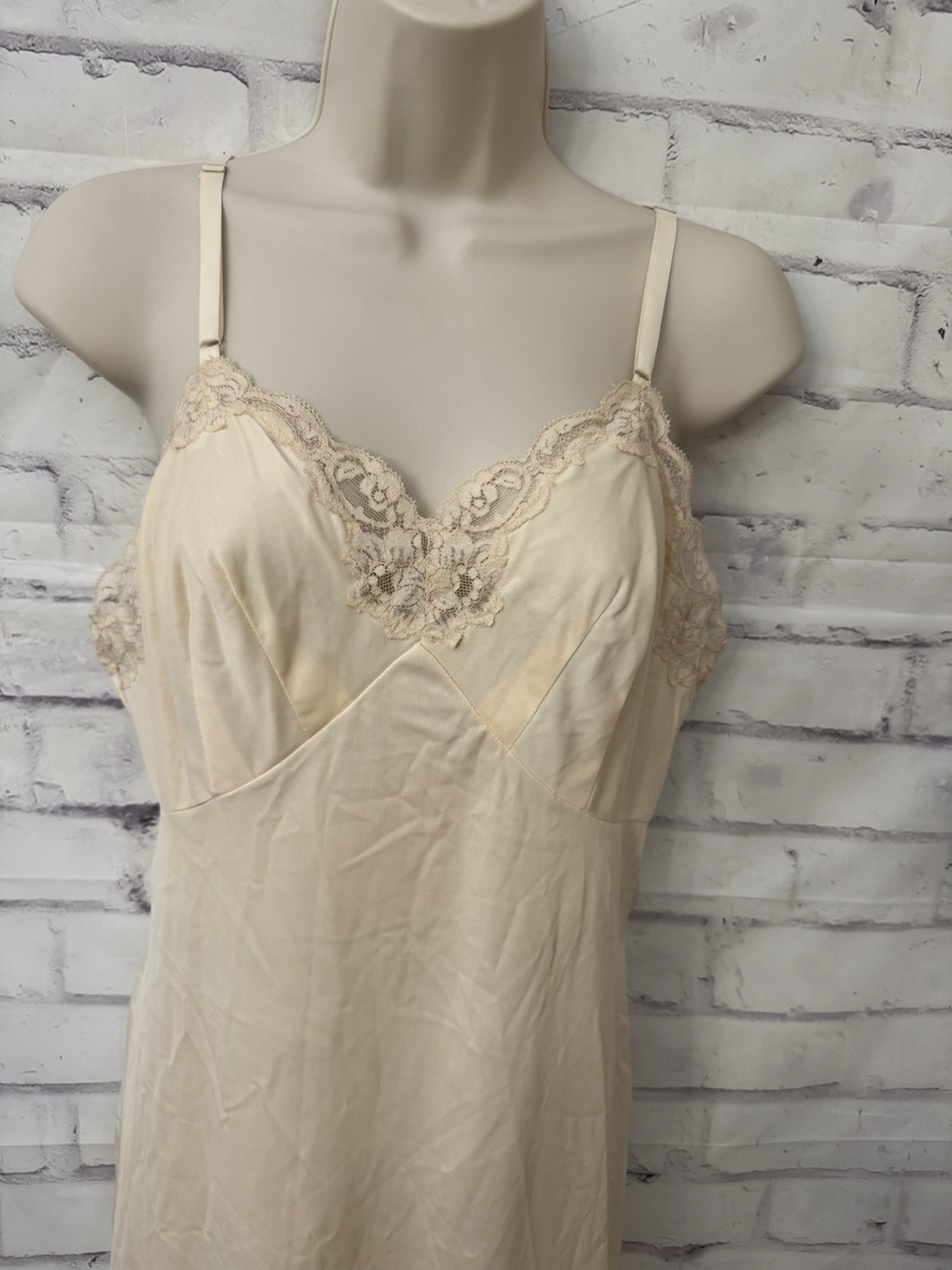 как выглядит Vintage Wonder Maid Sz 34 Non Cling Full Dress Slip Dress Lace Ivory 2970 фото