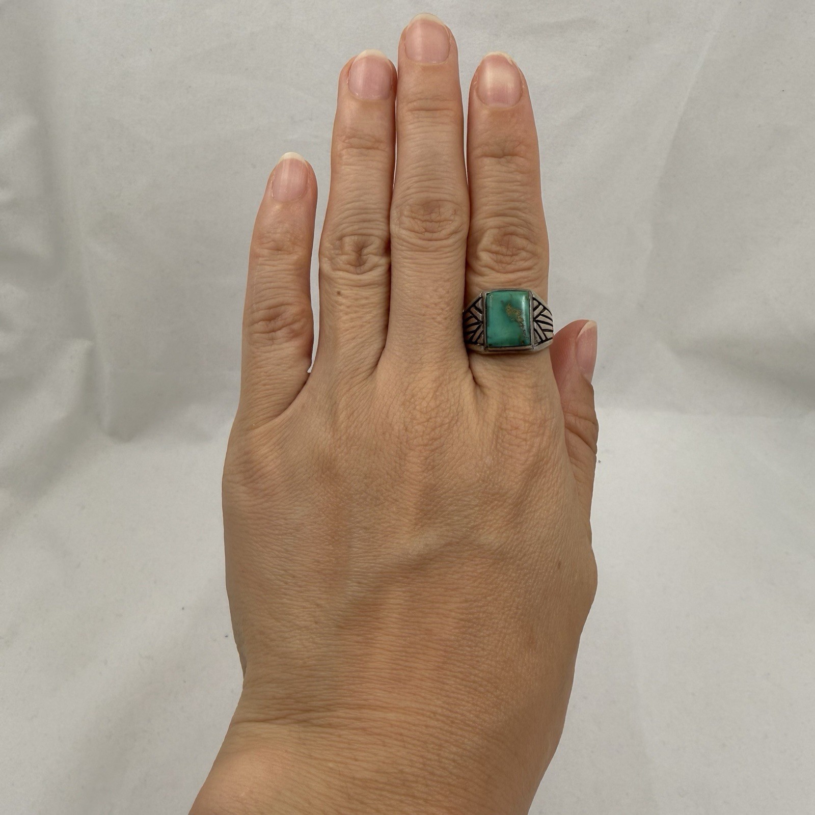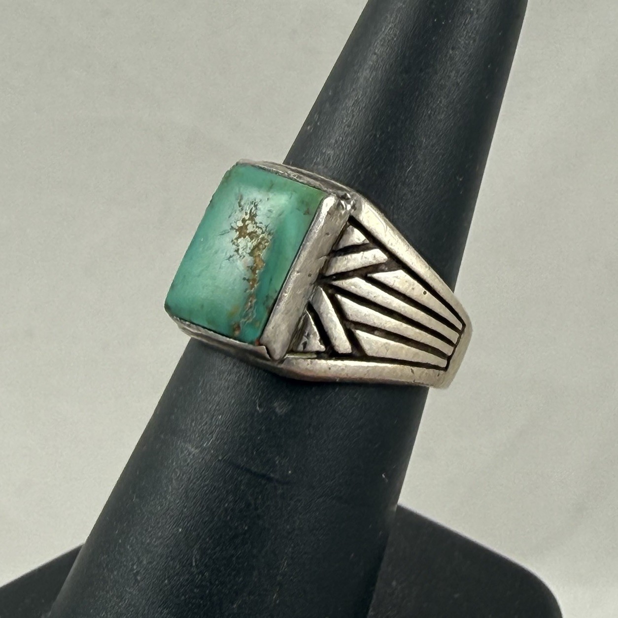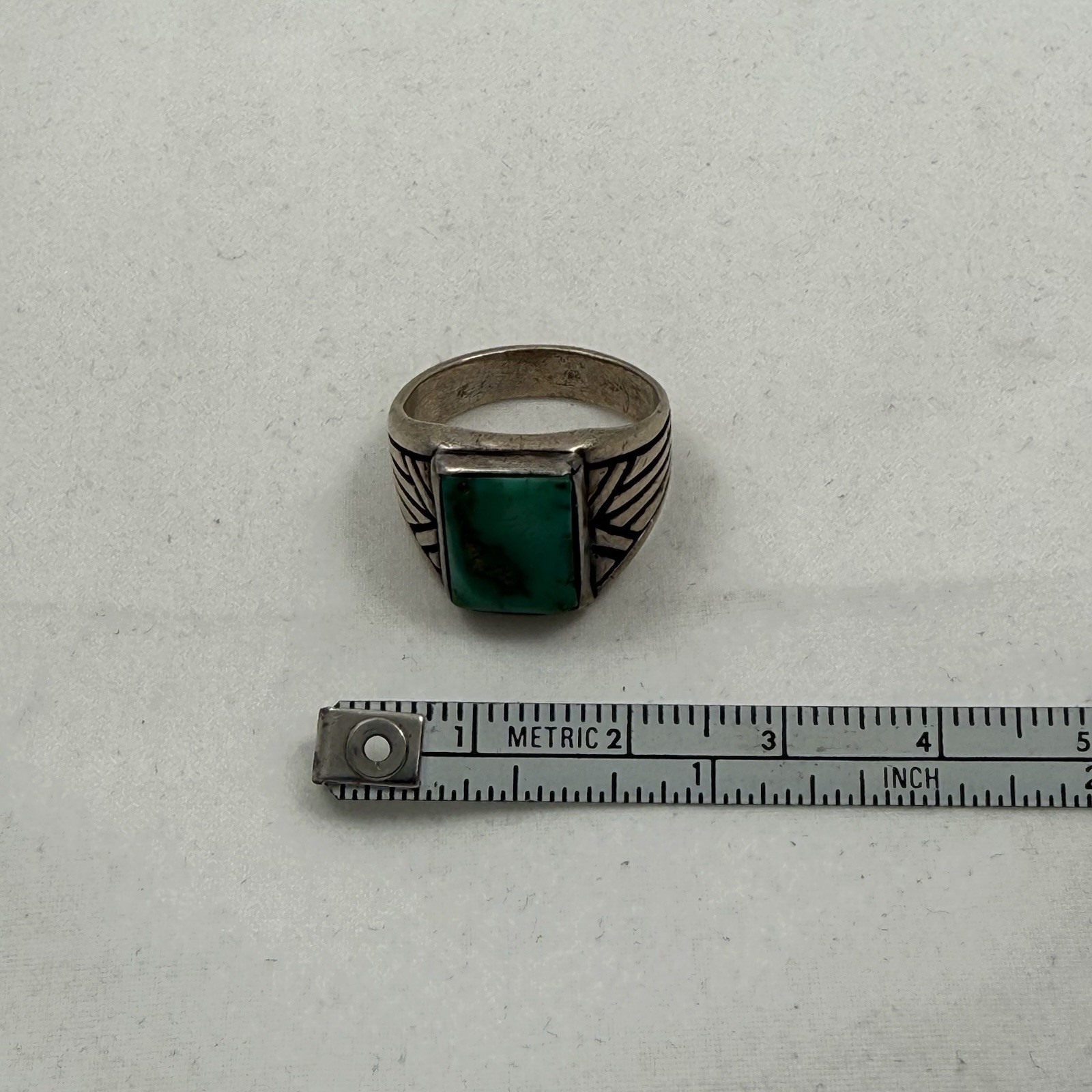 Rare Vintage Native American Sterling Silver Green Turquoise Ring Size 6.5 7.7g