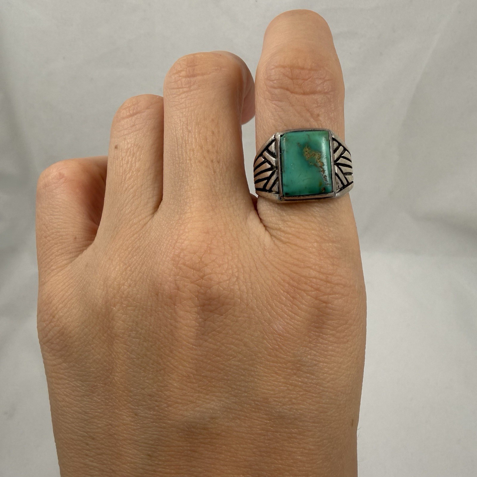 как выглядит Rare Vintage Native American Sterling Silver Green Turquoise Ring Size 6.5 7.7g фото