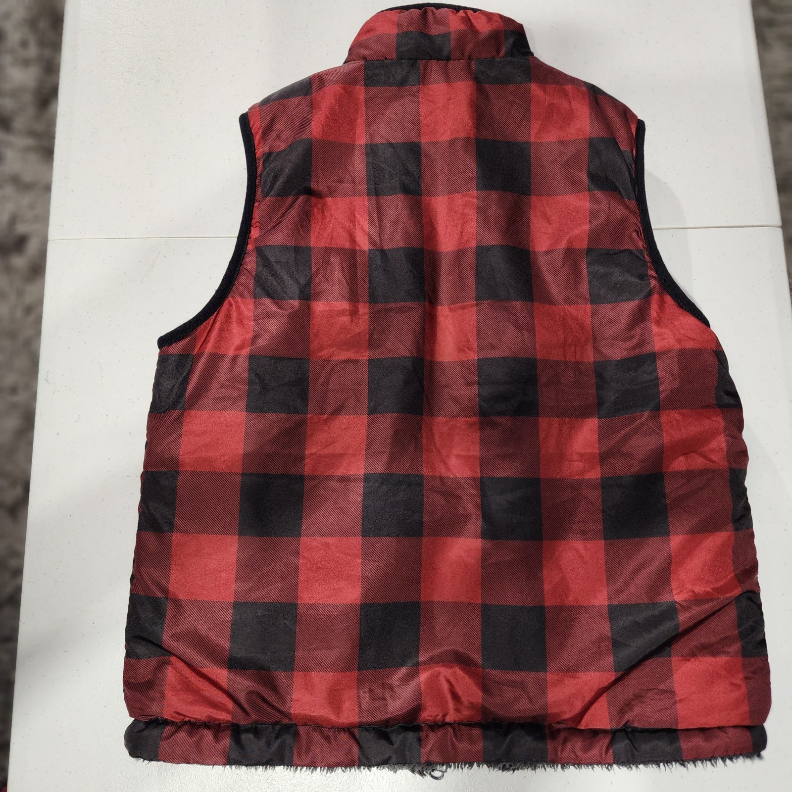 как выглядит Unisex Kids Red Black Check Gray Reversible Zip-Up Sleeveless Vest Size S фото