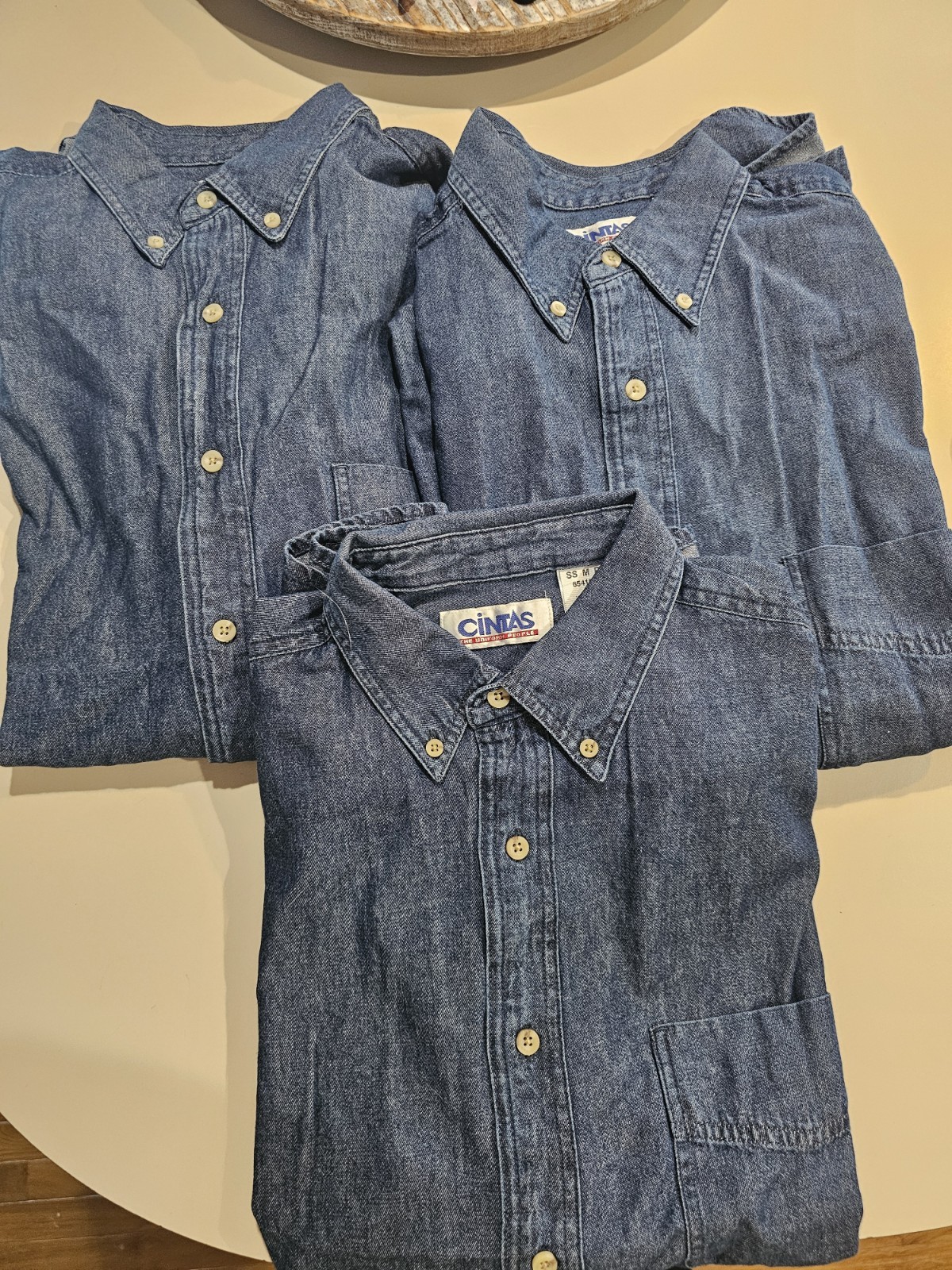 как выглядит Lot 3 Cintas Denim Short Sleeve Medium Regular Work Shirts New 65415-83 фото