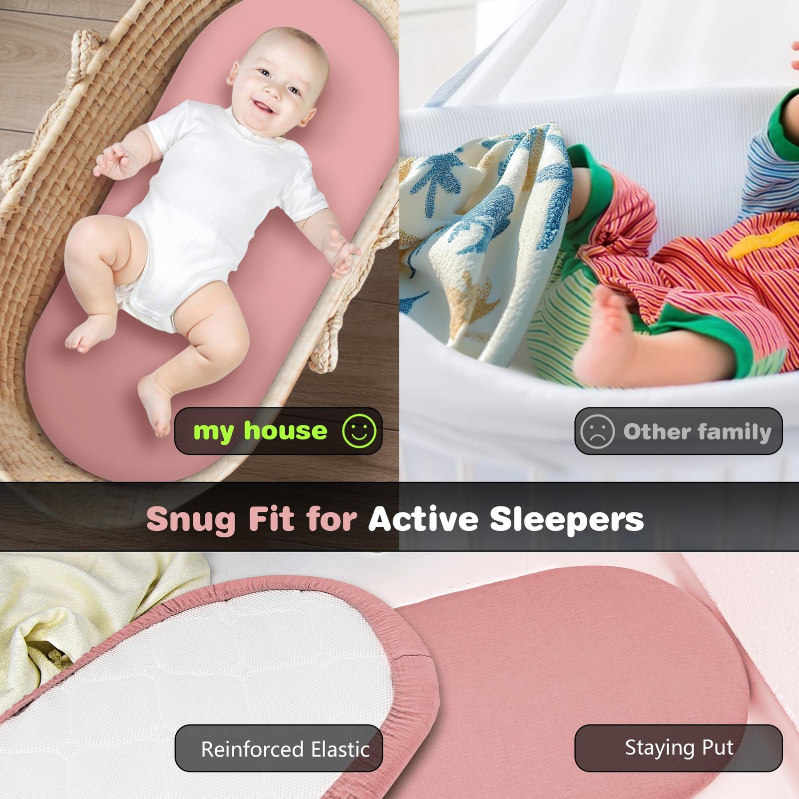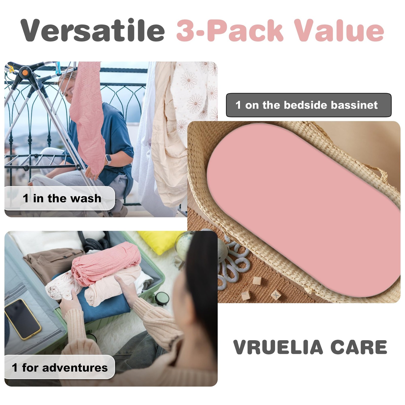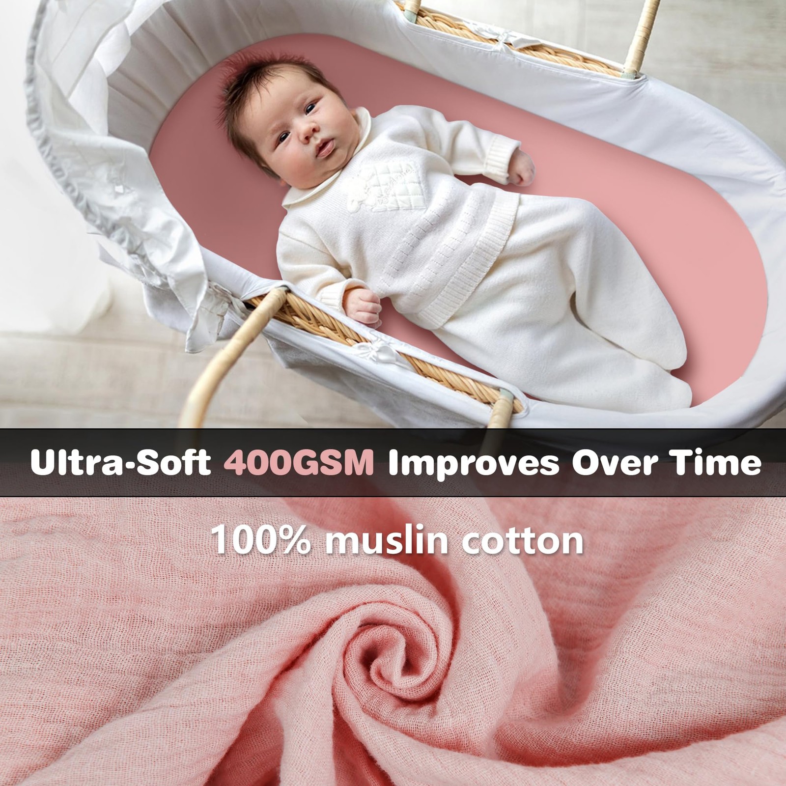 3-Pack Cotton Muslin Bassinet Sheets - Fitted Elastic Mattress Cover for Baby