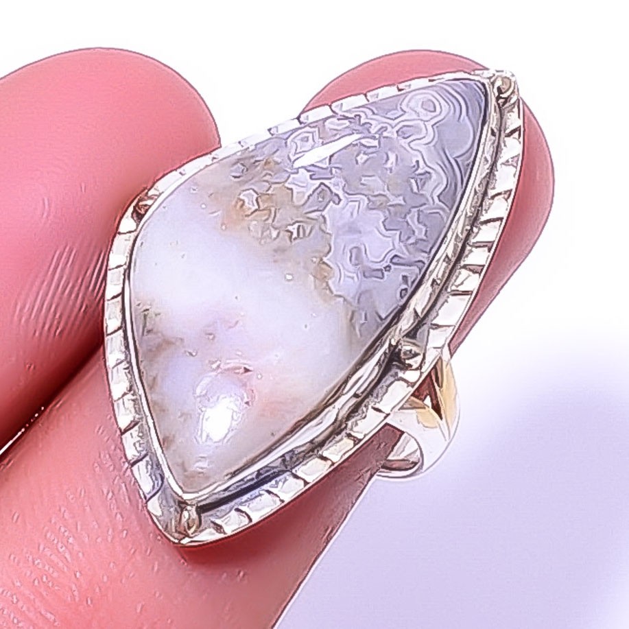 как выглядит Crazy Lace Agate - Australia Handmade 925 Sterling Silver Ring s.8.5 T8 фото