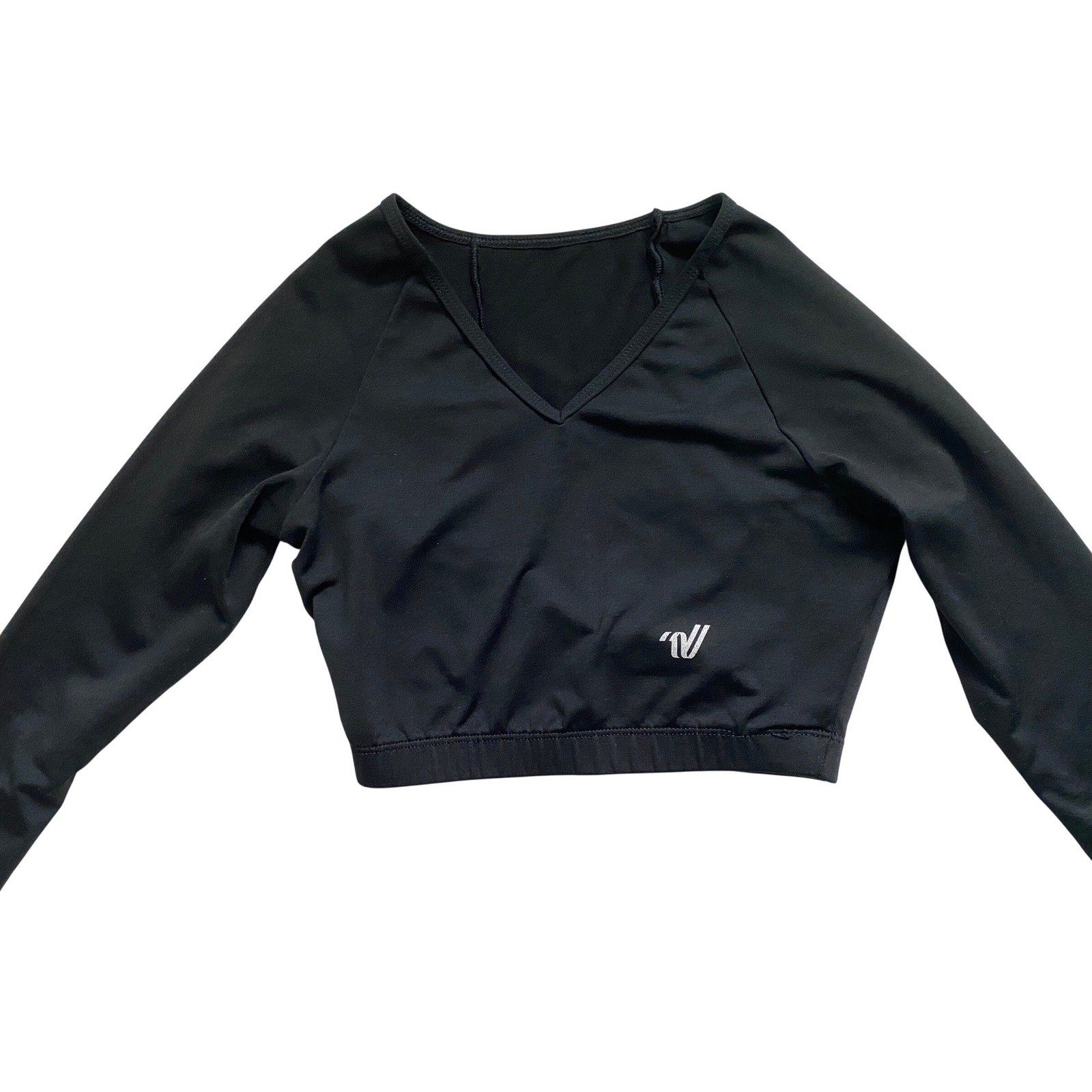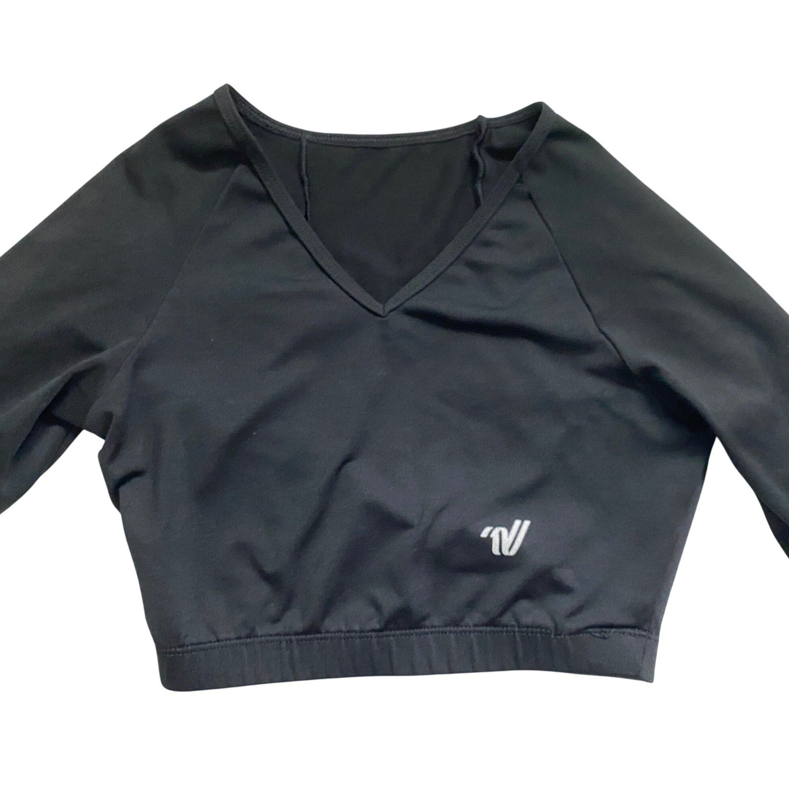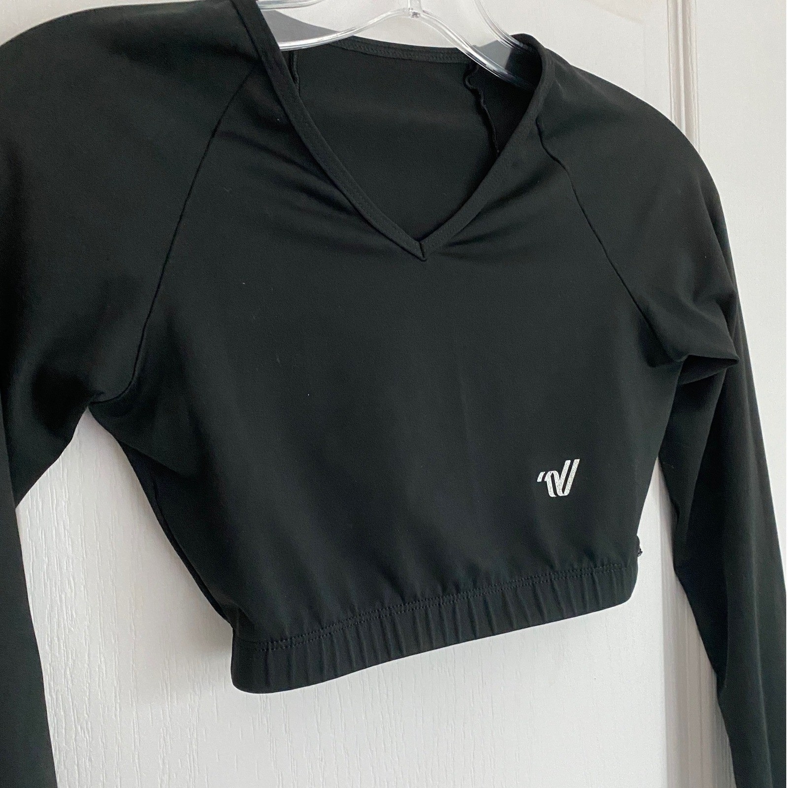 Varsity Spirit Womens Black Long Sleeve V-Neck Crop Top Cheer Dance Small