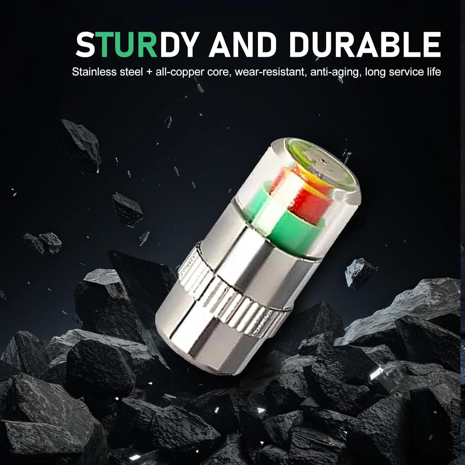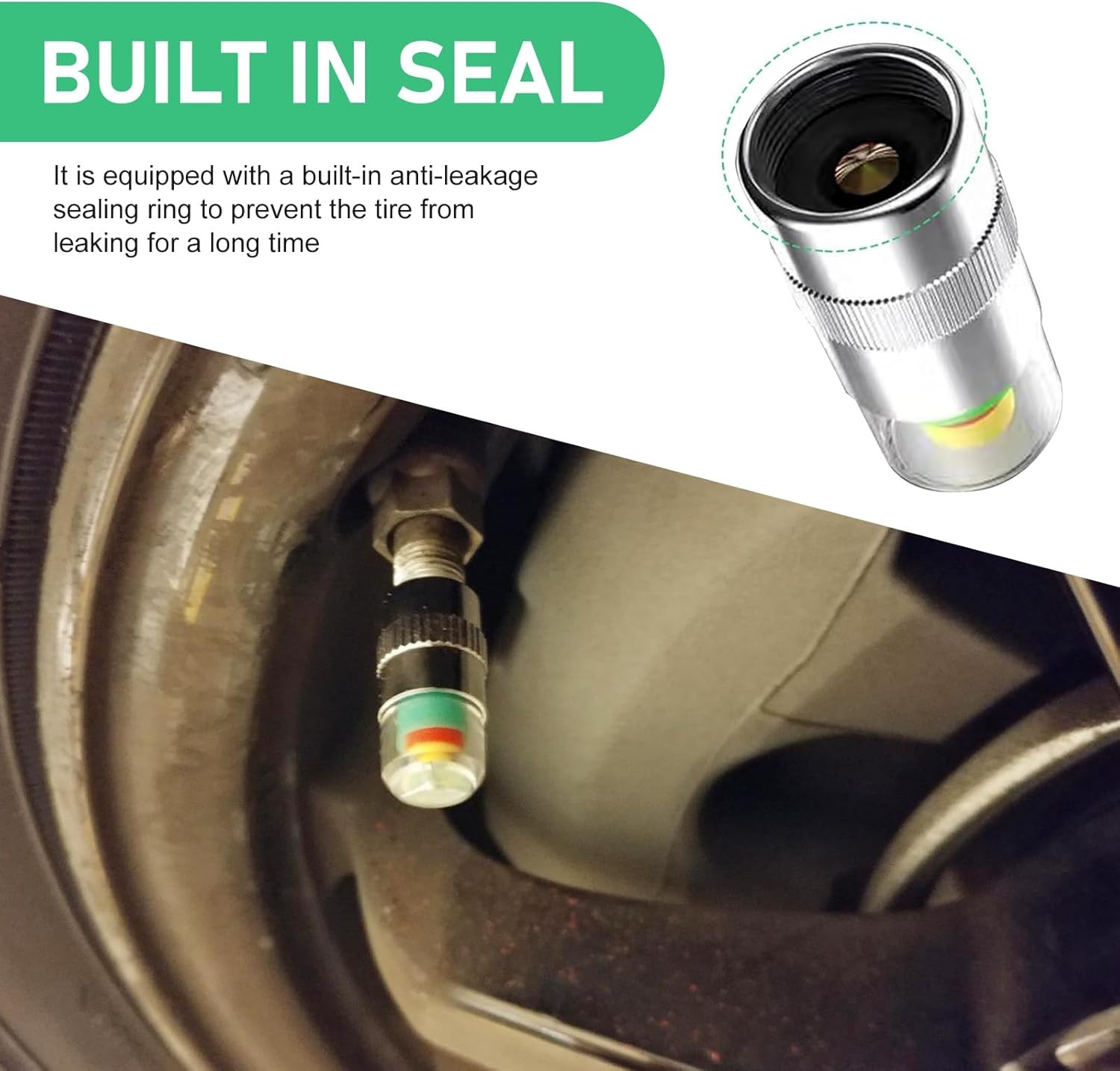 • 4 PCS Tire Pressure Monitor Valve Stem Cap, 2.4bar 36PSI Tire Pressure Indicator