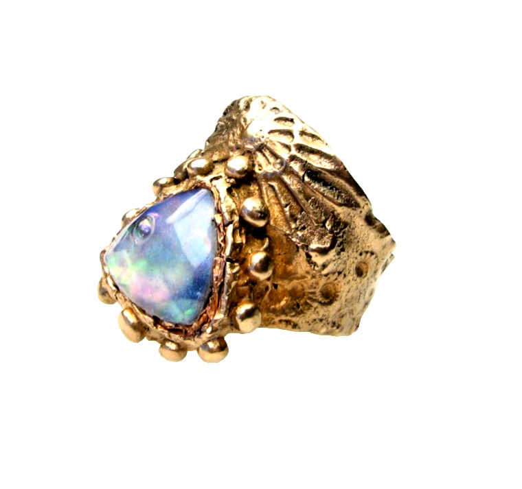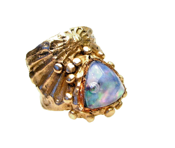 Antique Style Golden Bronze Ring-Abalone-Size 9