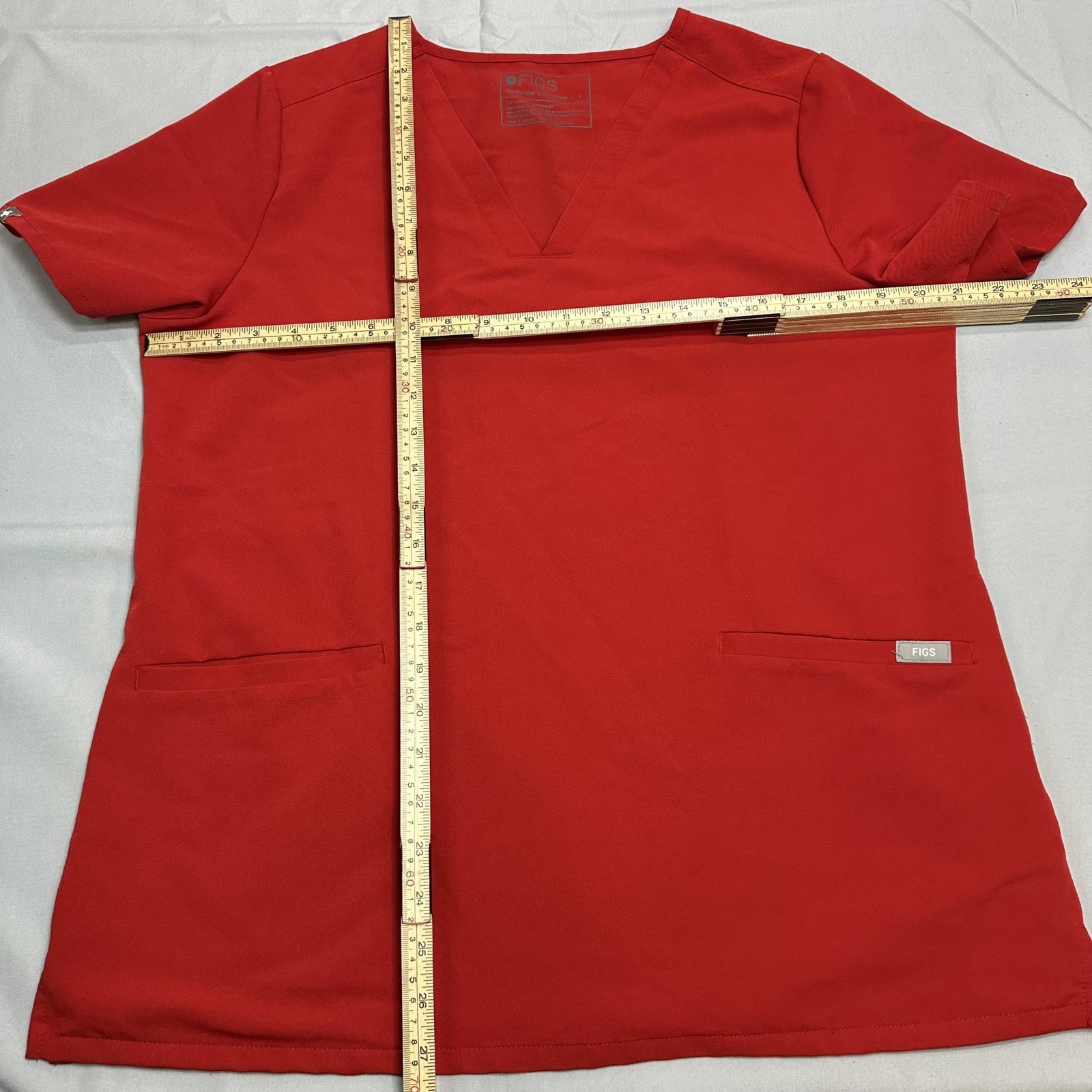 как выглядит FIGS Shirt Womens Large Red V Neck Medical Scrub Tunic Top Technical Pockets фото