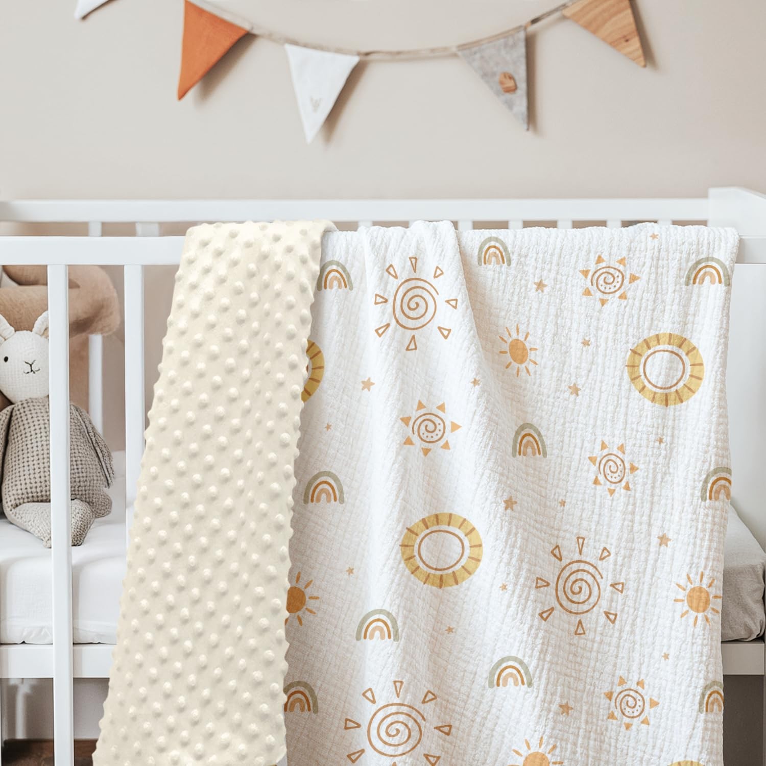 Sun Baby Blankets for Boys Girls, Soft Nursery Minky Blankets with Muslin and