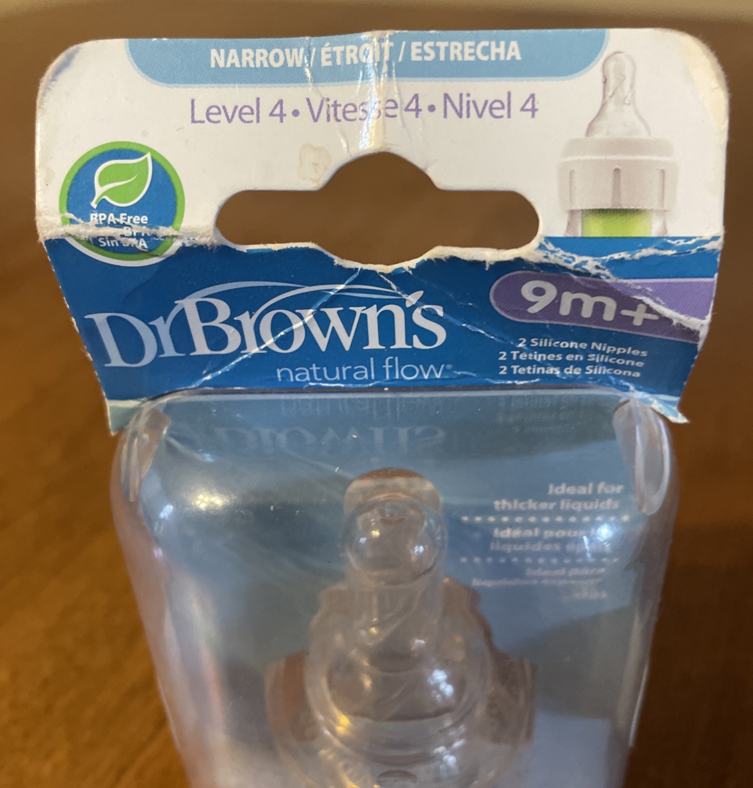 New Sealed Dr. Brown's Natural Flow Standard Silicone Nipple Level 4, 9m , 2 Ct