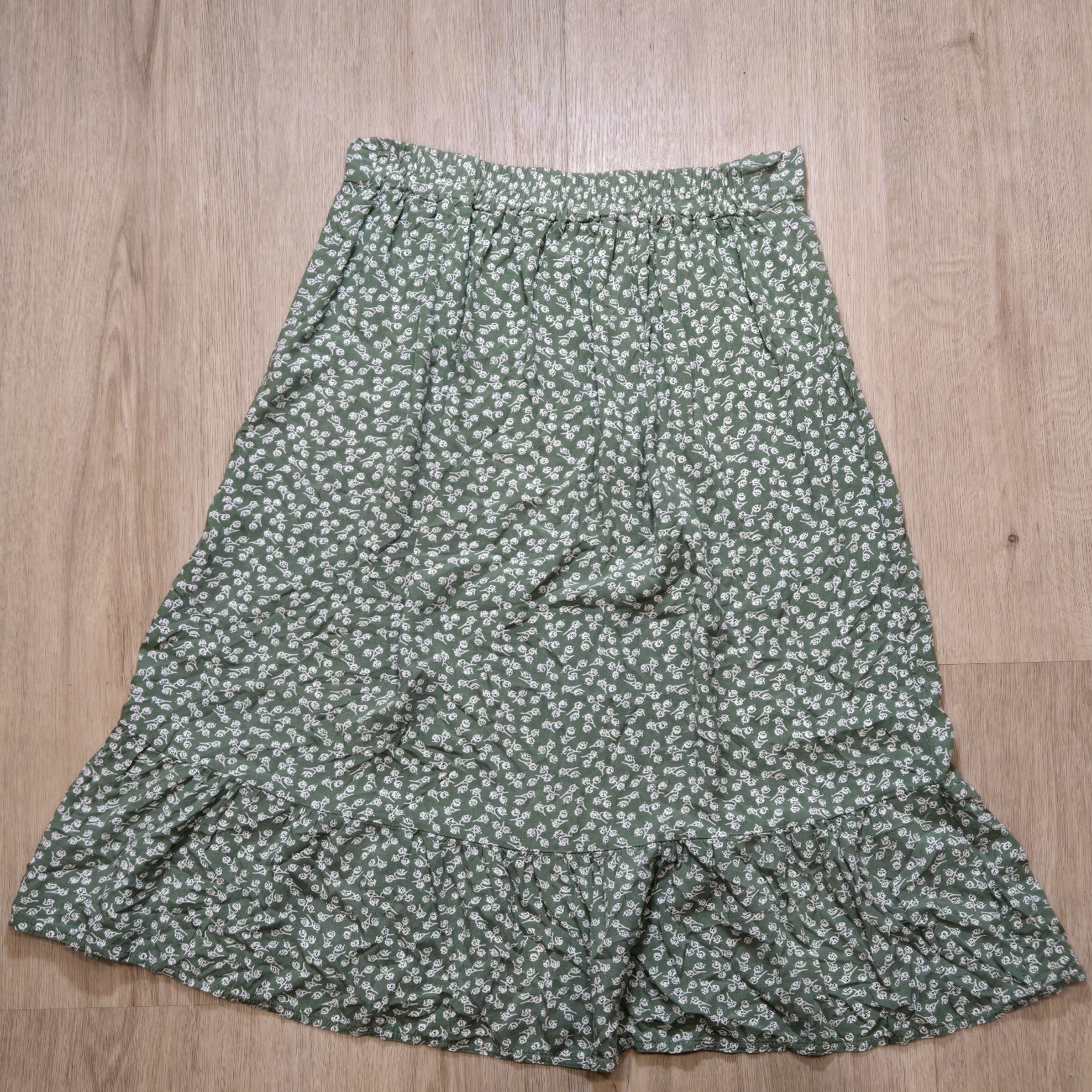 Y2k Green Floral Skirt M Cottage Milkmaid Prairie Farm Ruffle Fairy Romantic