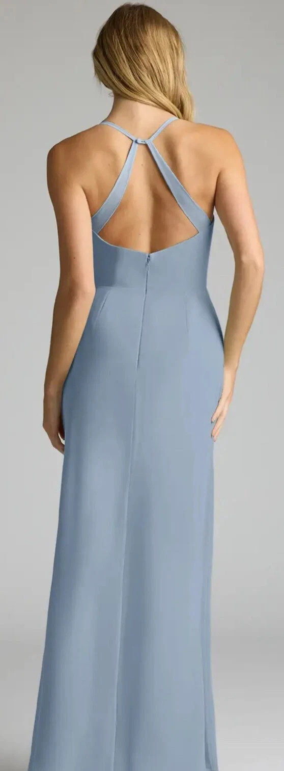 как выглядит AZAZIE-BECCA Dusty Blue Sheath V-Neck Chiffon Size 31.5" Bust 23" Waist NEW фото