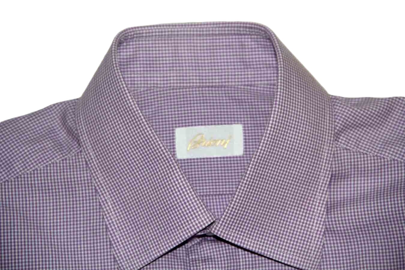 Brioni Dress Shirt Purple White Check Cotton Italy Men's Slim Fit 16 X 32