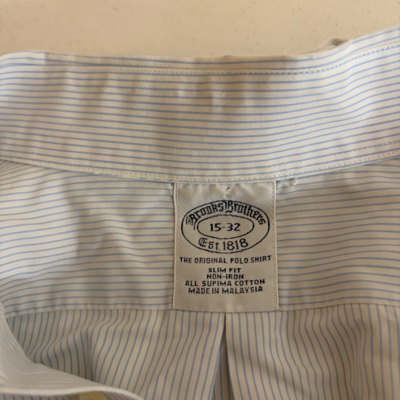 как выглядит Brooks Brothers Dress Shirt Mens 15-32 White Striped Button Down Slim-Fit фото