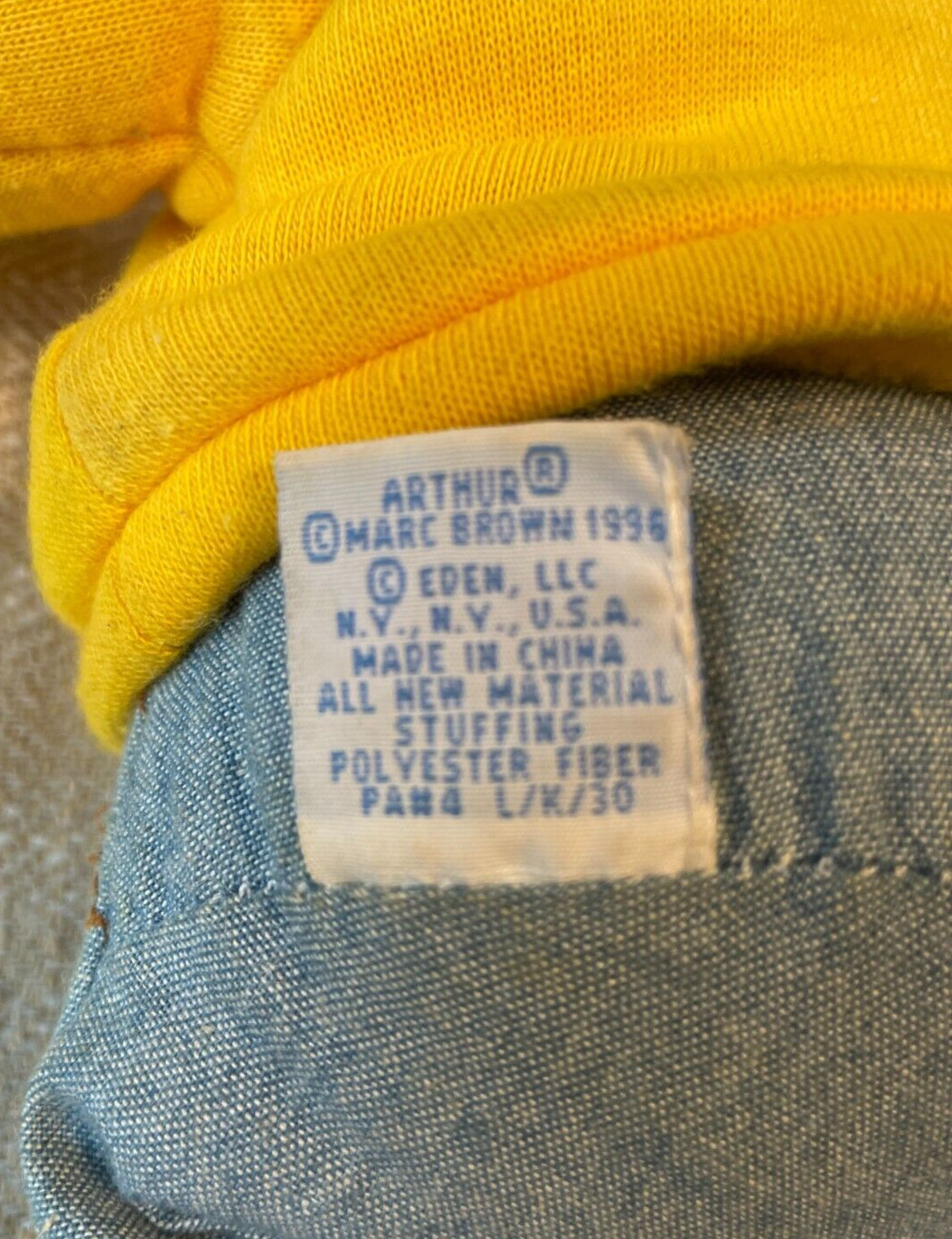 RARE Vintage Marc Browns ARTHUR by Eden, 1996 PBS Television Plush Toy 15-inch