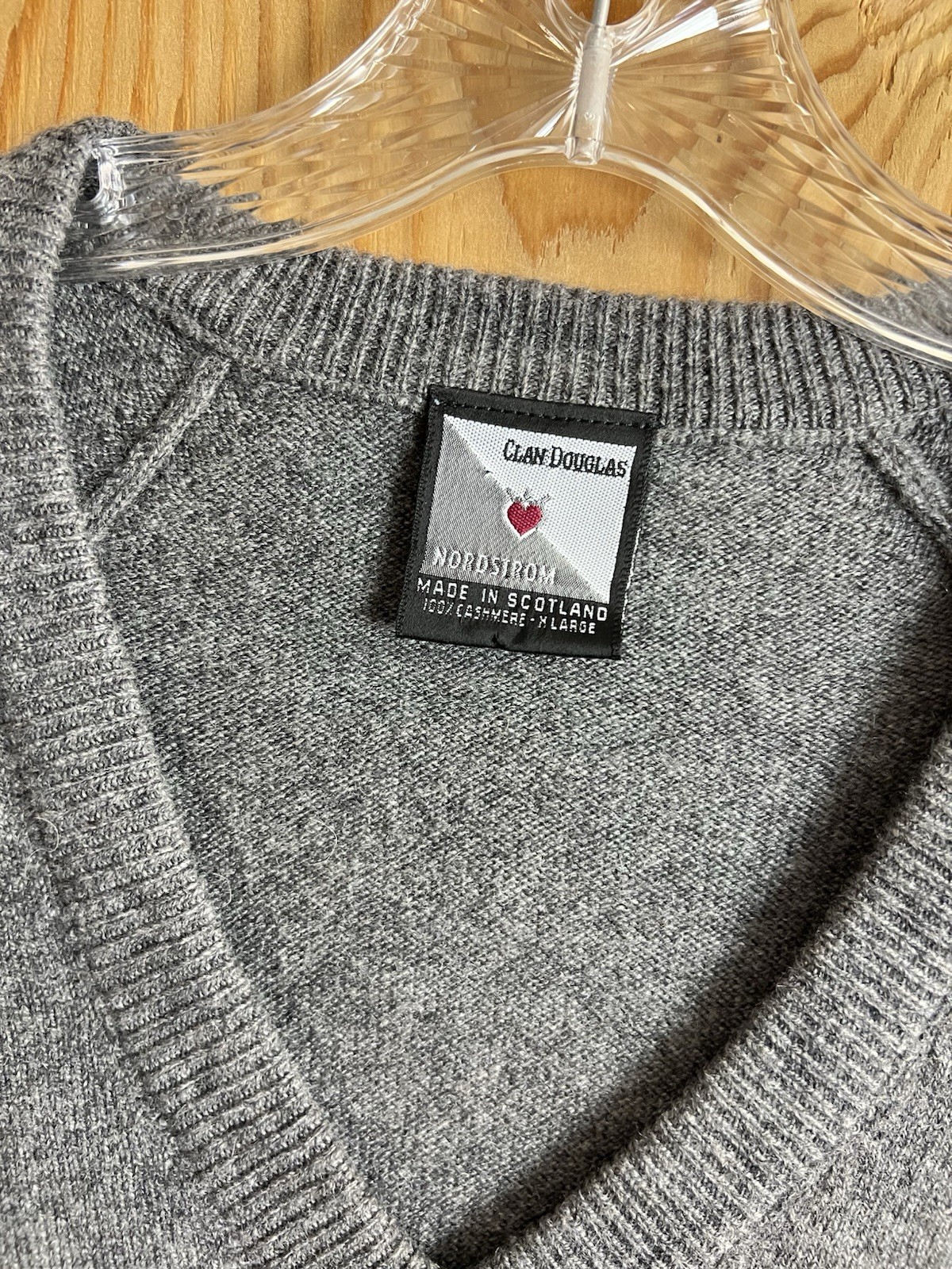 Nordstrom Made In Scotland Clan Douglas 100 Cashmere Mens XL Sweater V-Neck