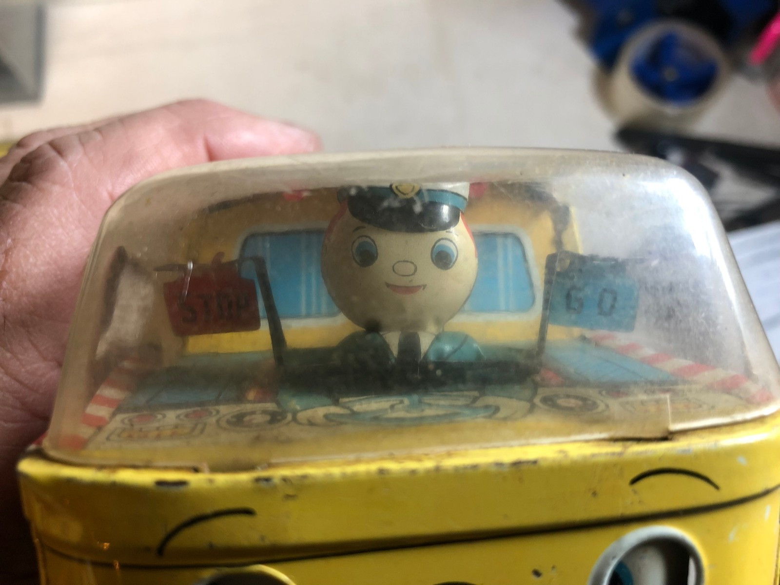 как выглядит Toymaster Tin Lithographed Friction School Bus - Japan - Eyes on Front C фото