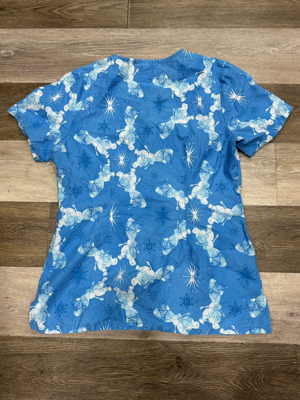 Disney Frozen II Women s Size Small Scrub Top Olaf Snowflakes Blue in EUC