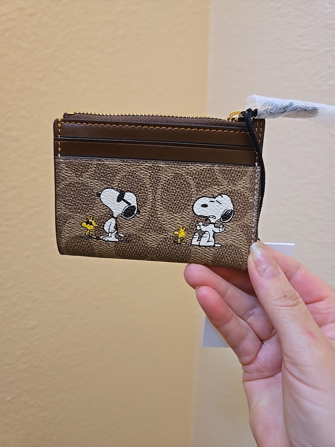 как выглядит Coach X Peanuts Mini Skinny ID Card Case In Signature Canvas With Snoopy Print фото
