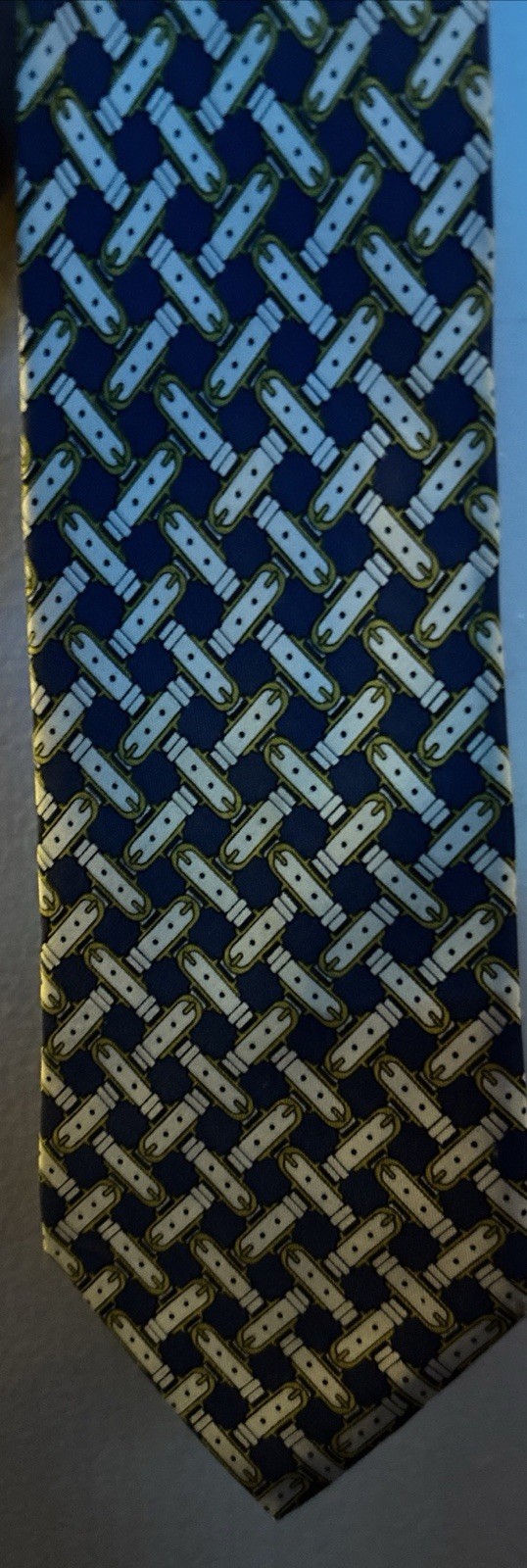 как выглядит Herm s Silk Tie 493 HA Geometric Chain Link Red Interlocking Vintage France фото