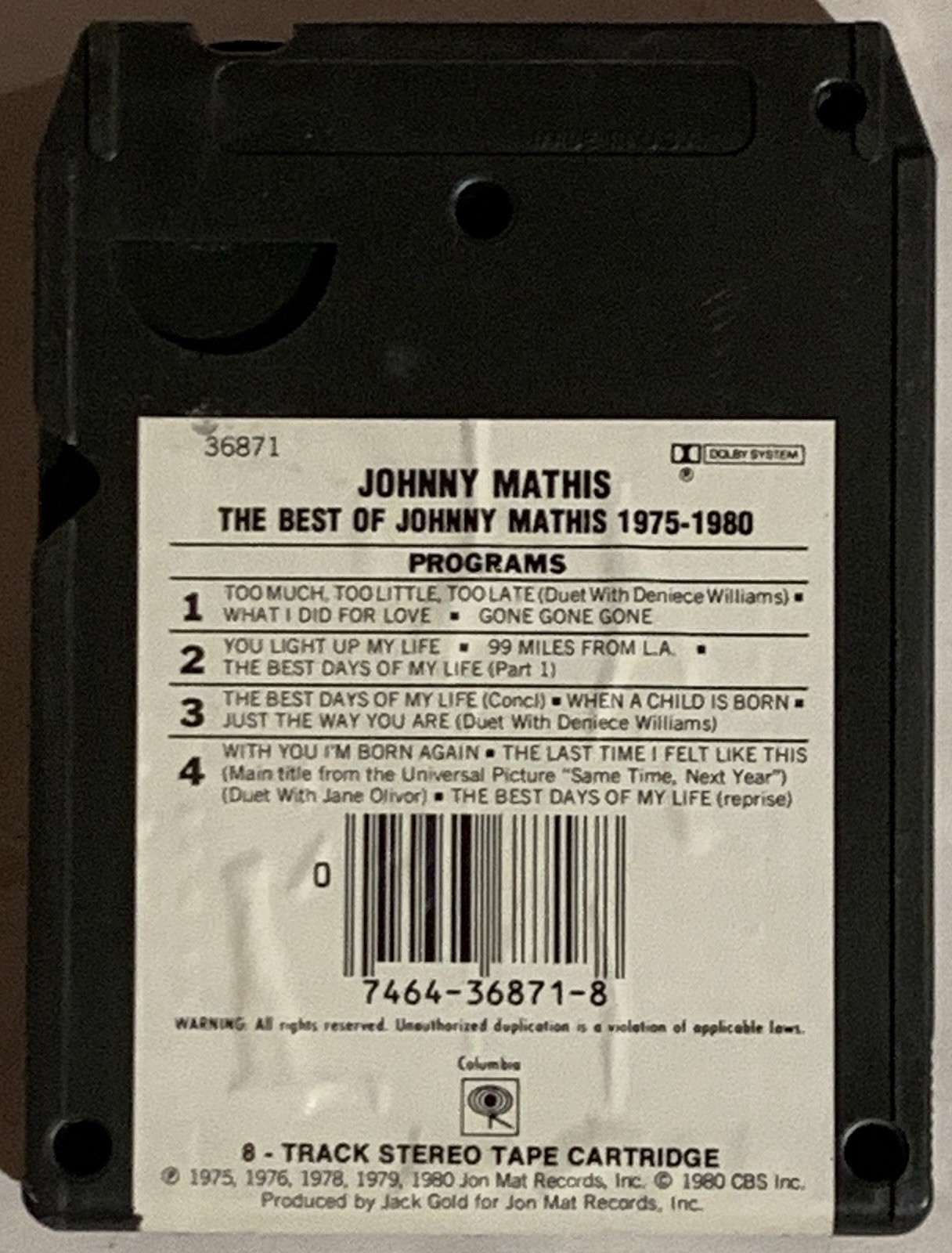 Johnny Mathis The Best of 1975-1980 8-Track Tape Play Tested Working