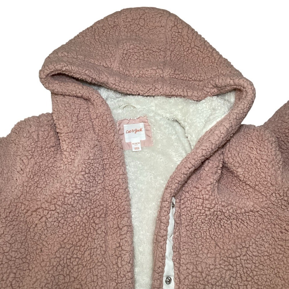 как выглядит Cat Jack Kids Girls Teddy Fleece Hooded Jacket Pink Size XL 14 16 Snap Front фото