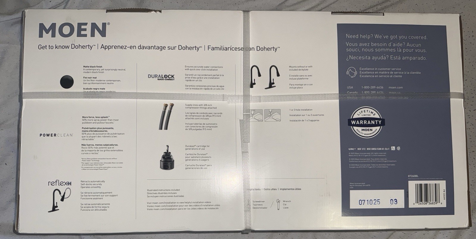 Moen Doherty 87260BL Matte Black Pull-Down Kitchen Faucet Single-Hole