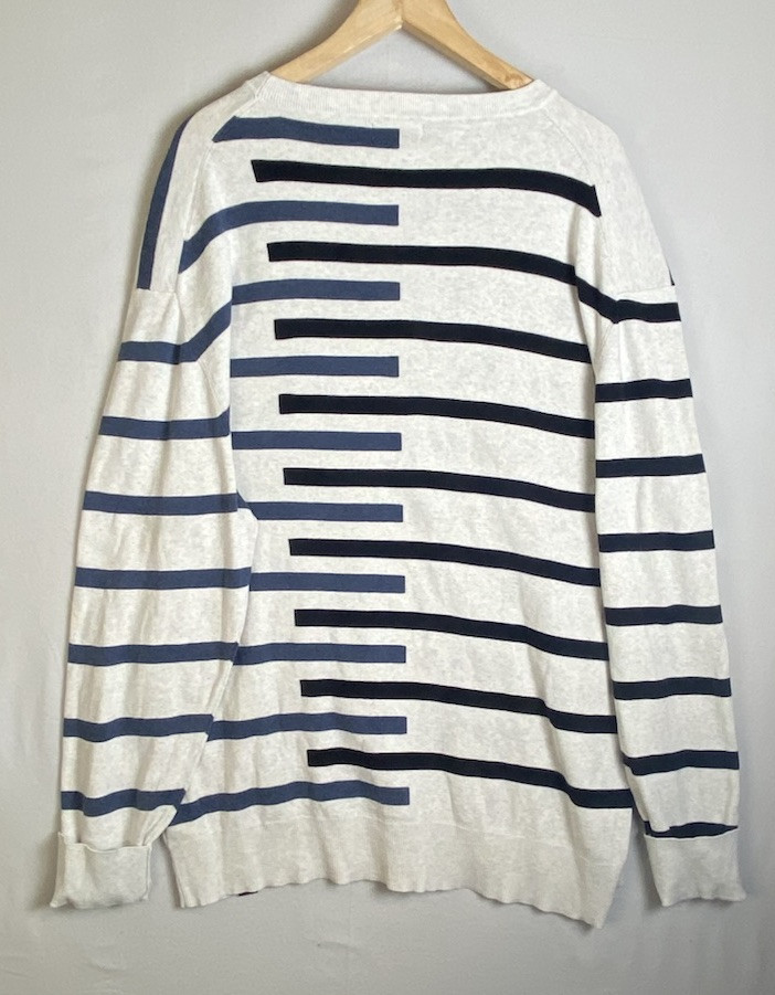 DKNY Men s XXL Stripe Knit Sweater Lightweight Crew Neck Blue White