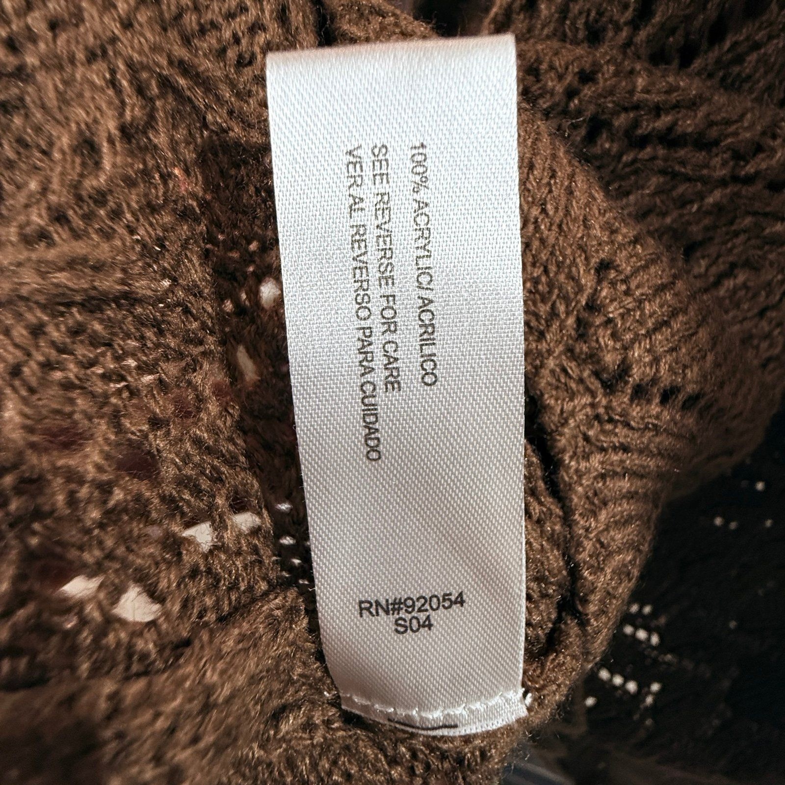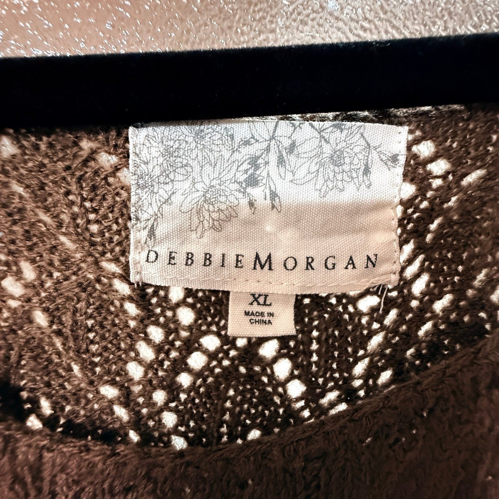 Debbie Morgan Argyle Crochet Pullover Sweater 3/4 Sleeve Brown Women's Size XL