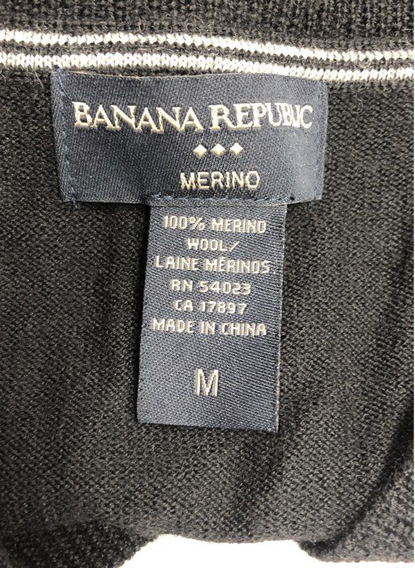 Banana Republic Men's Black 100 Merino Wool V-Neck Sweater Size M