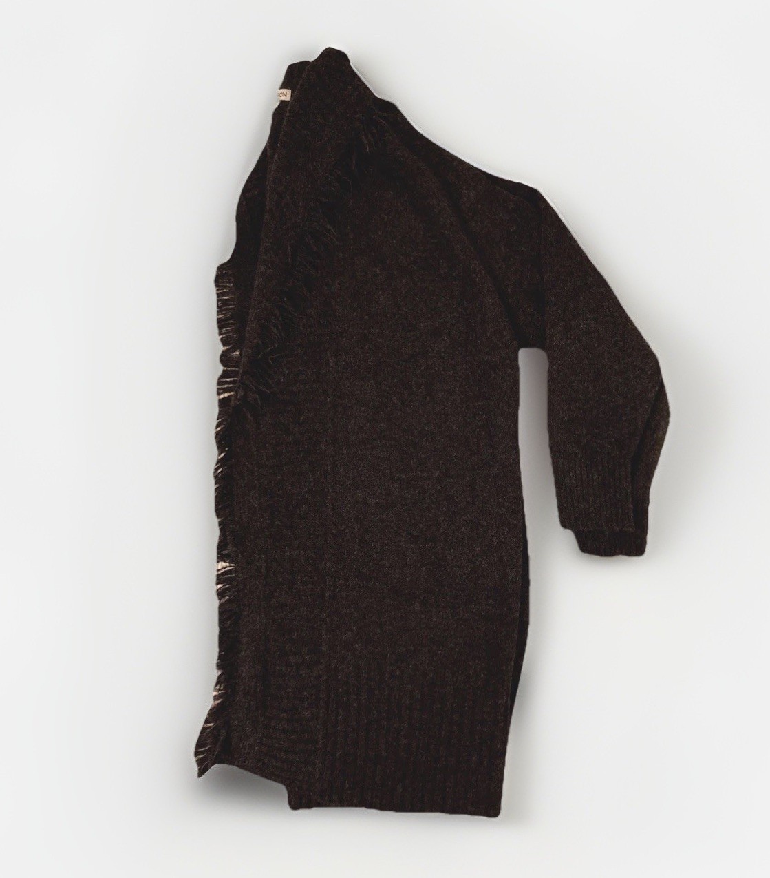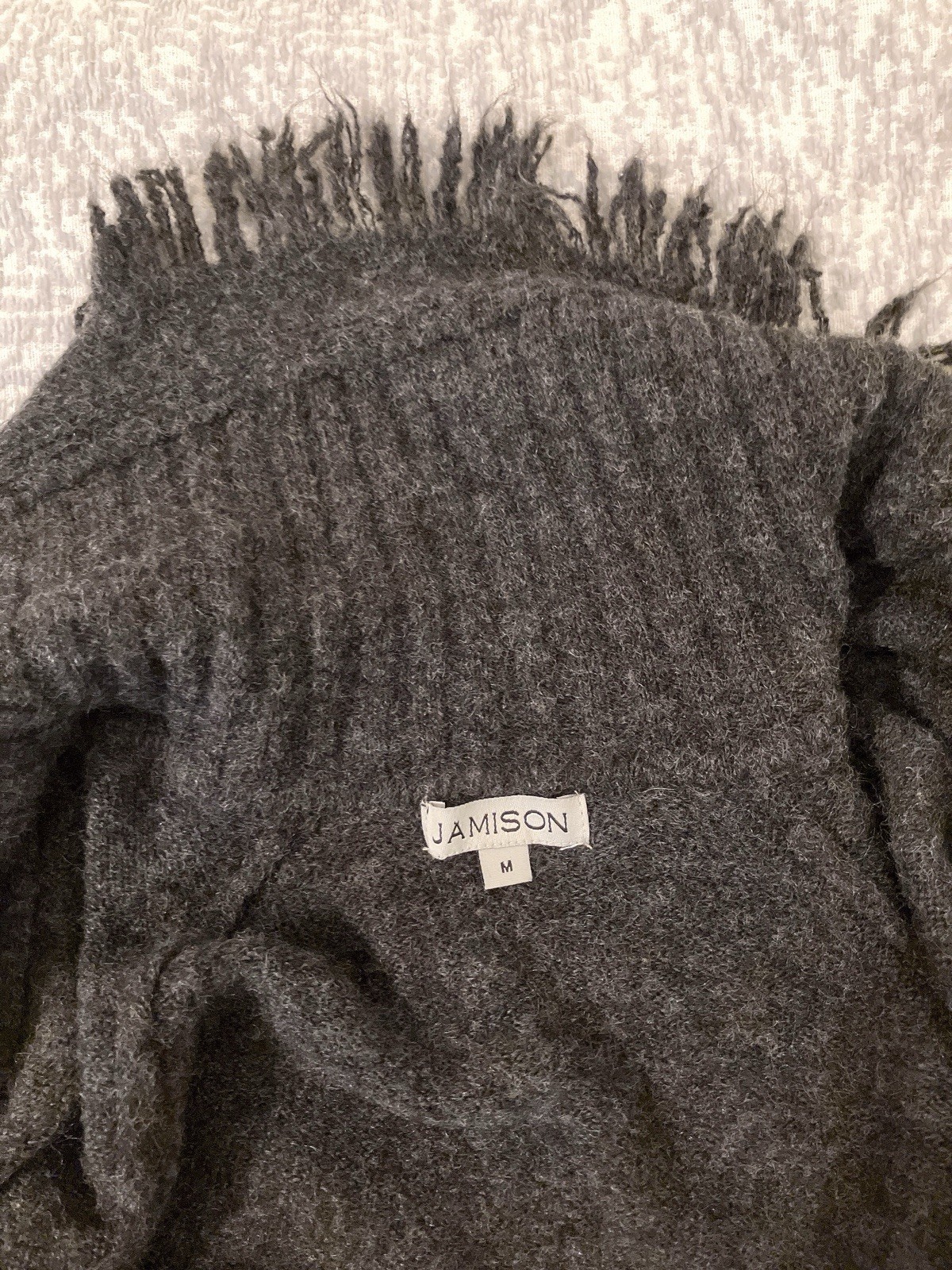 как выглядит Nordstrom Jamison Knit Fringe Cardigan Wool Sweater Grey Oversized Medium фото