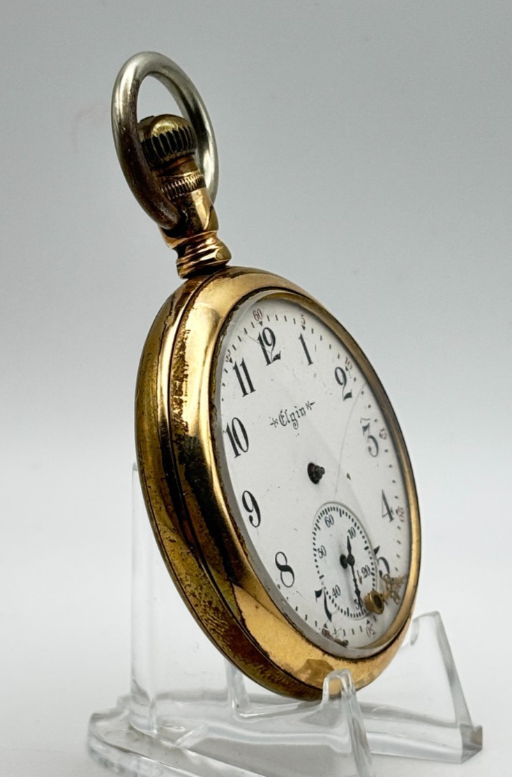 как выглядит Elgin 15 Jewel Sz 16 10k Gold Filled Open Face Pocket Watch runs intermittantly фото