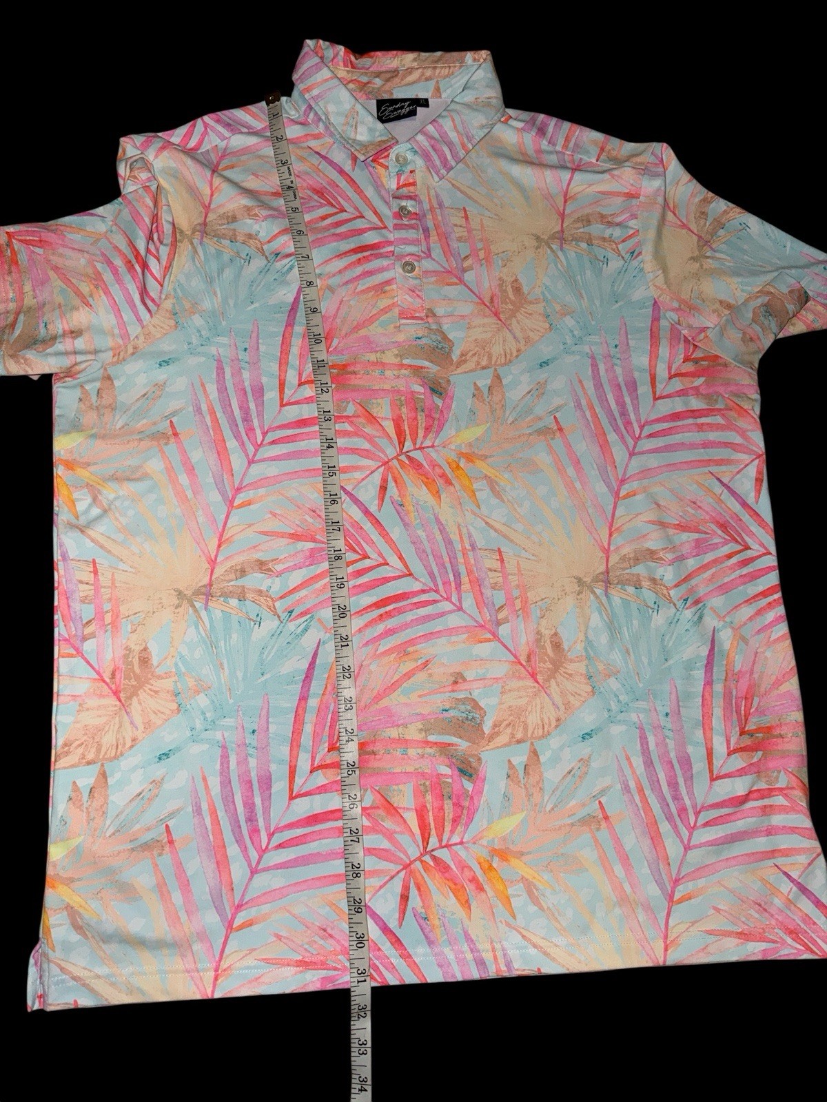 как выглядит Sunday Swagger Polo Golf Shirt Tropical Leafs Performance Stretch Mens Sz XL фото