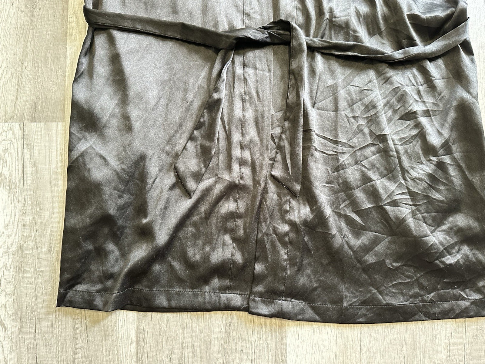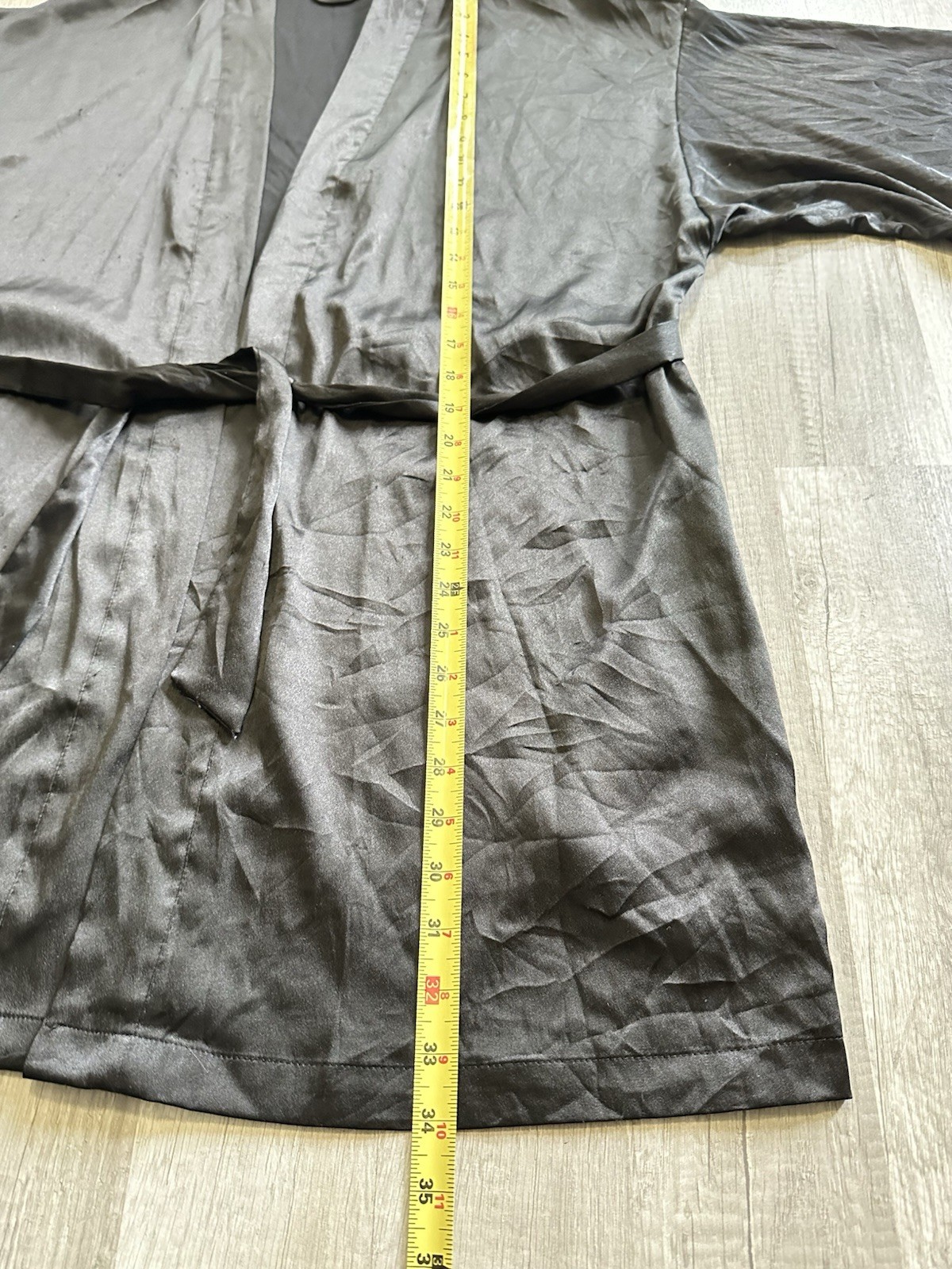 Victoria's Secret Womens Size M/L Black Satin Sheer Tie Kimono Robe