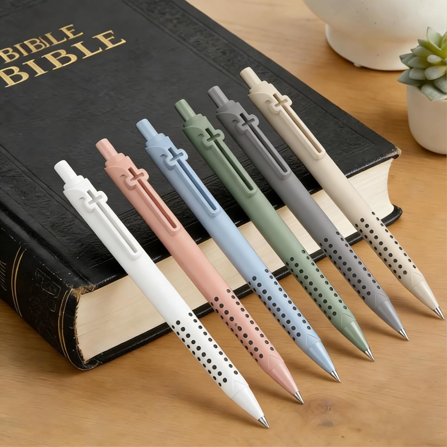 6 Pack Gel Pens with Cross Clips Stylish Christian Writing Instruments