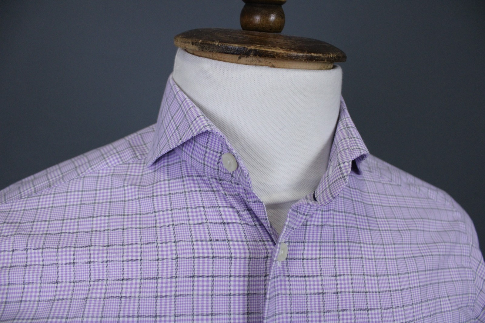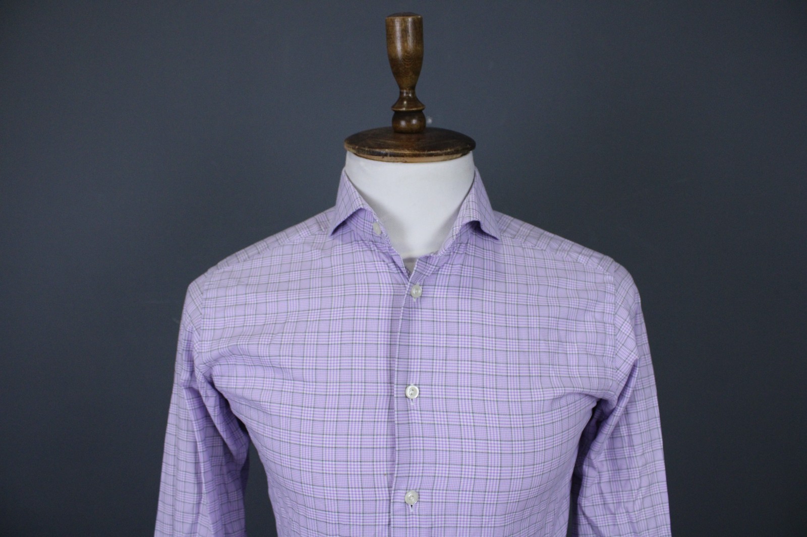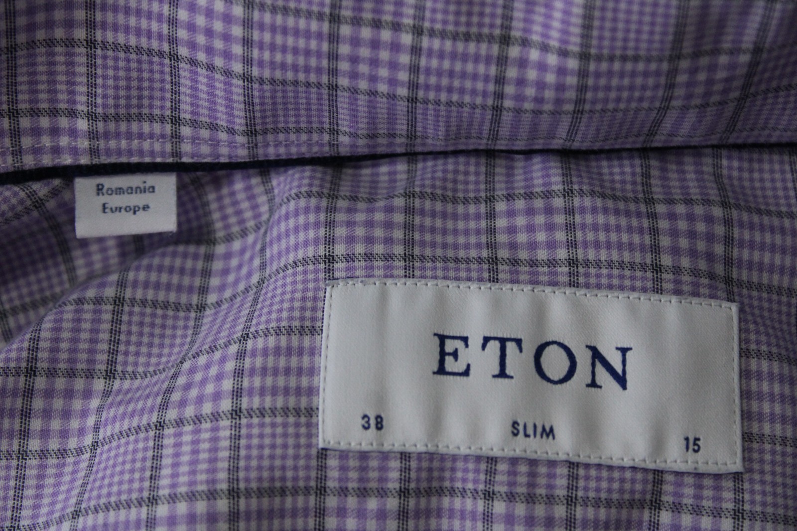 как выглядит Eton Purple CHeck Slim Fit Long Sleeve Button Down Dress Shirt Size 38 / 15 фото