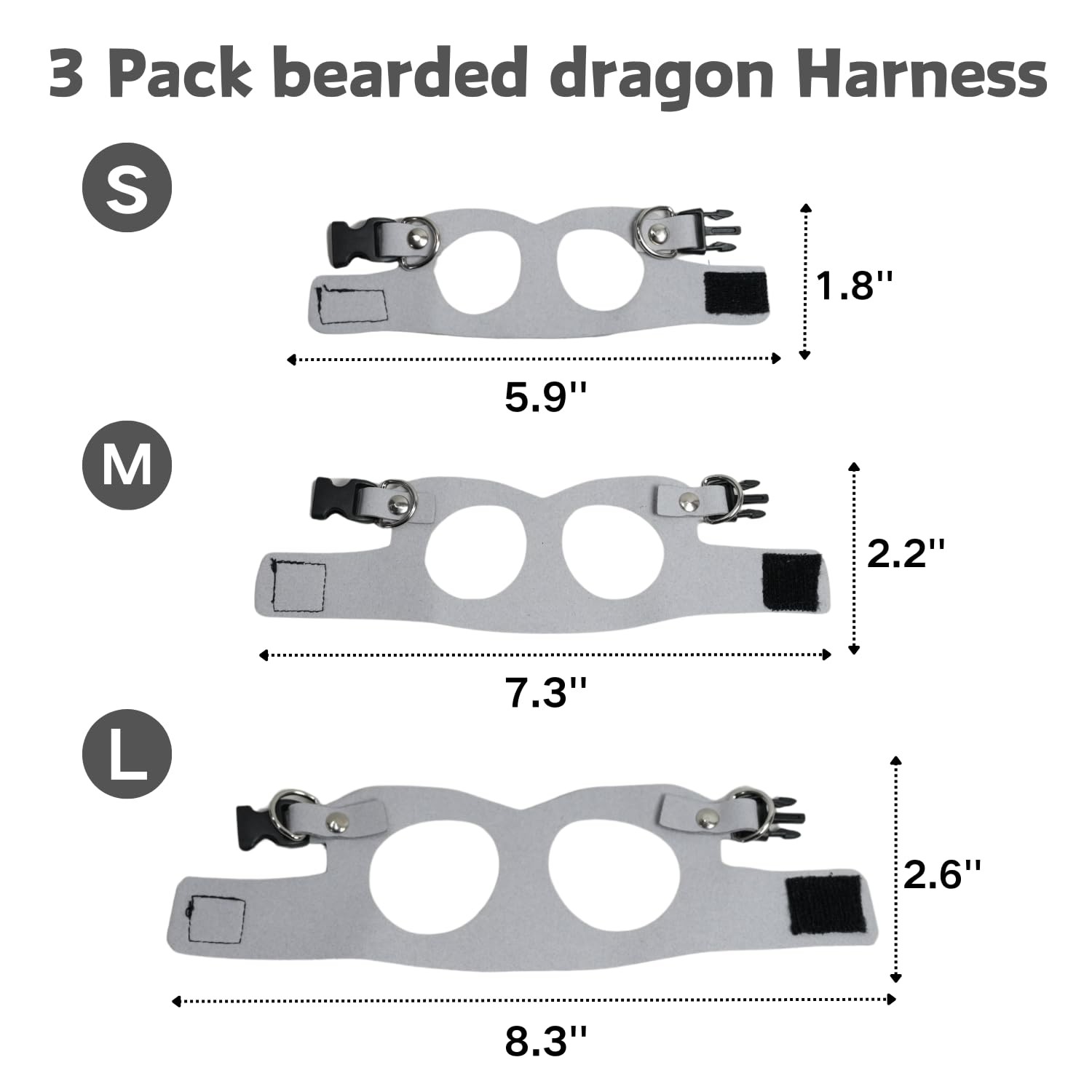 Included Components: 3 X Bearded Dragon Harness, 1 X Leash