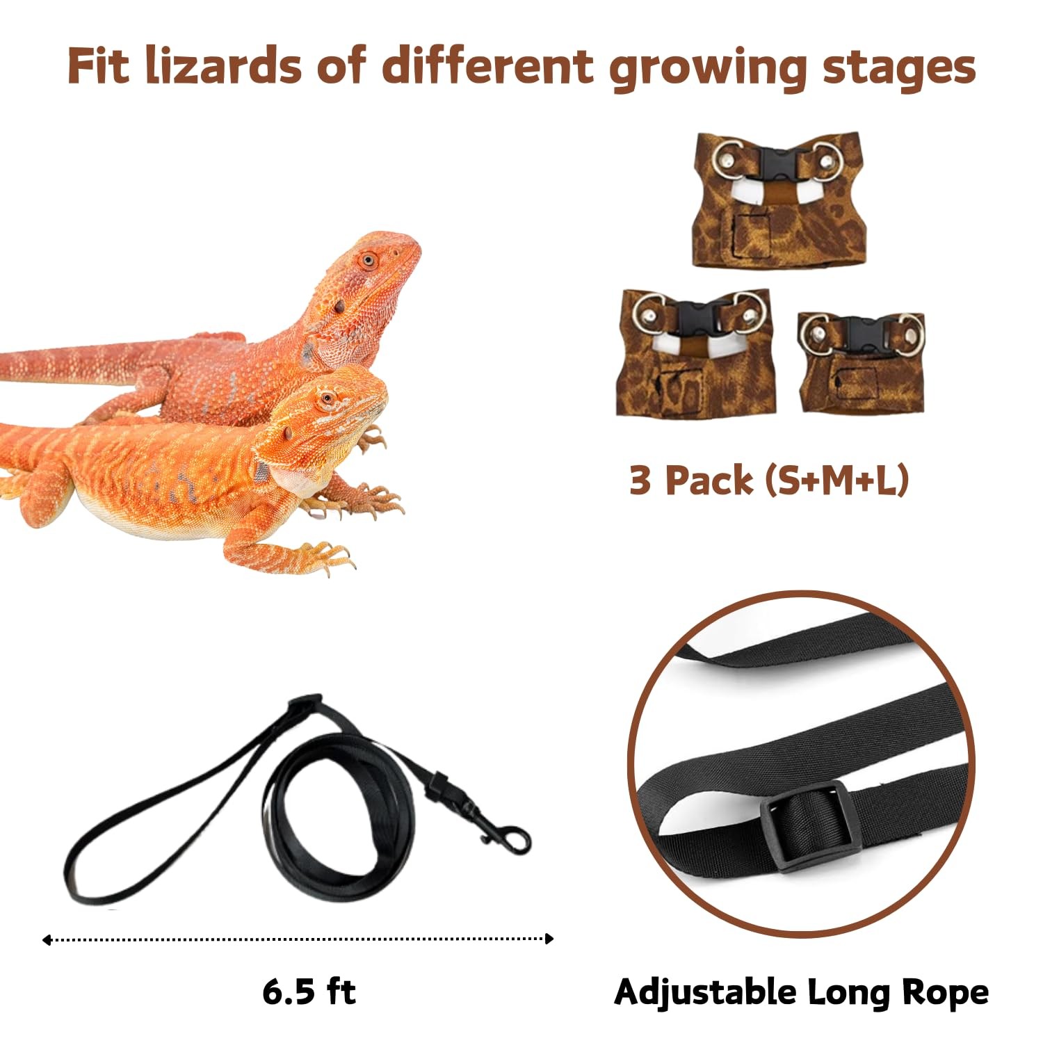 3 Pack Bearded Dragon Harness and Leash Set - Adjustable Soft Leather Lizard ...