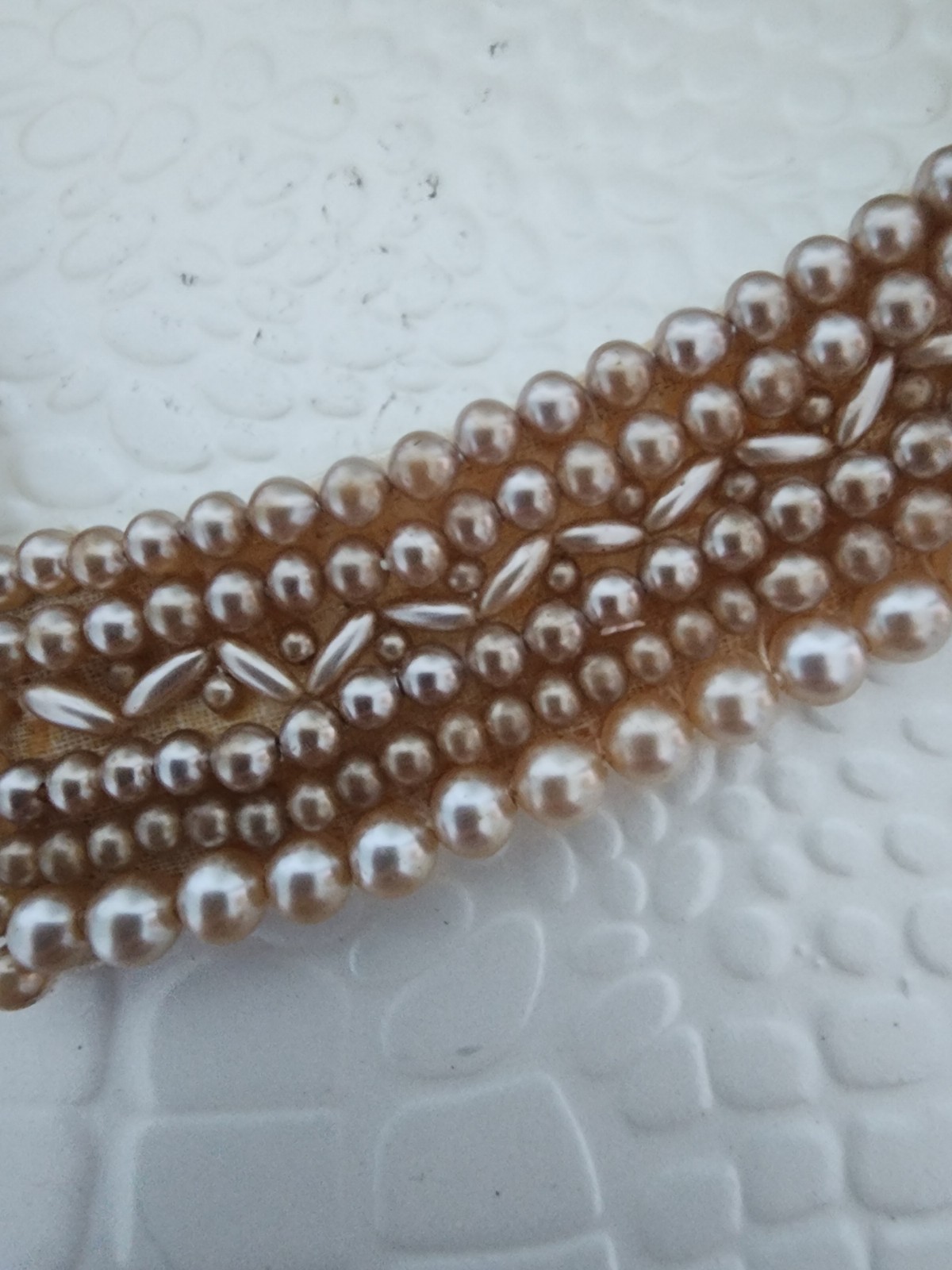 как выглядит VTG/Faux Champayne Pearl Satin Backed Collar/ Japan Good Condition фото
