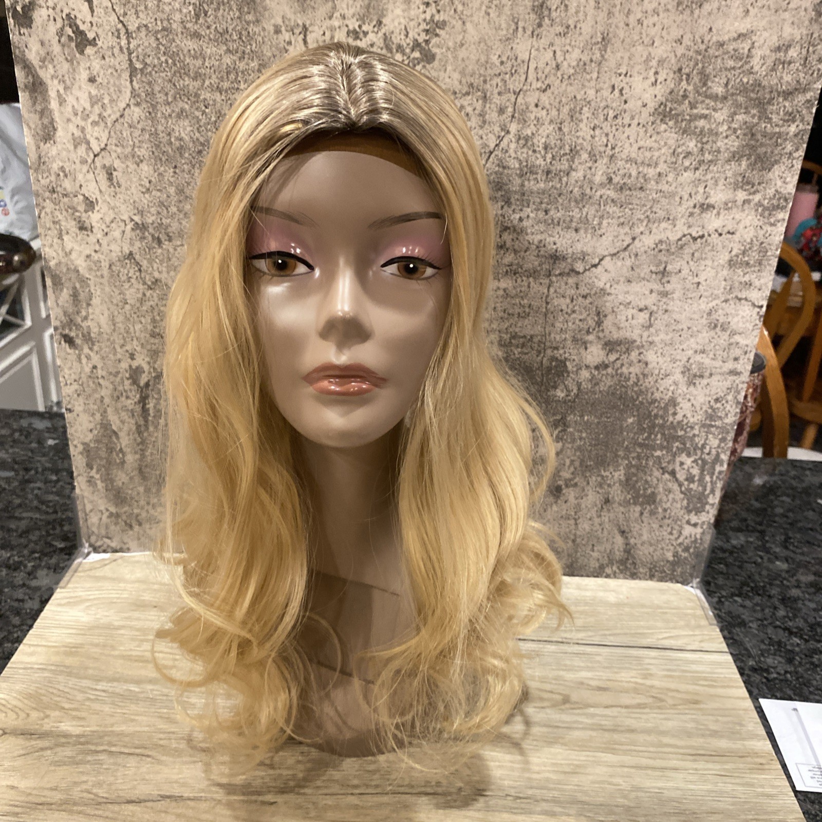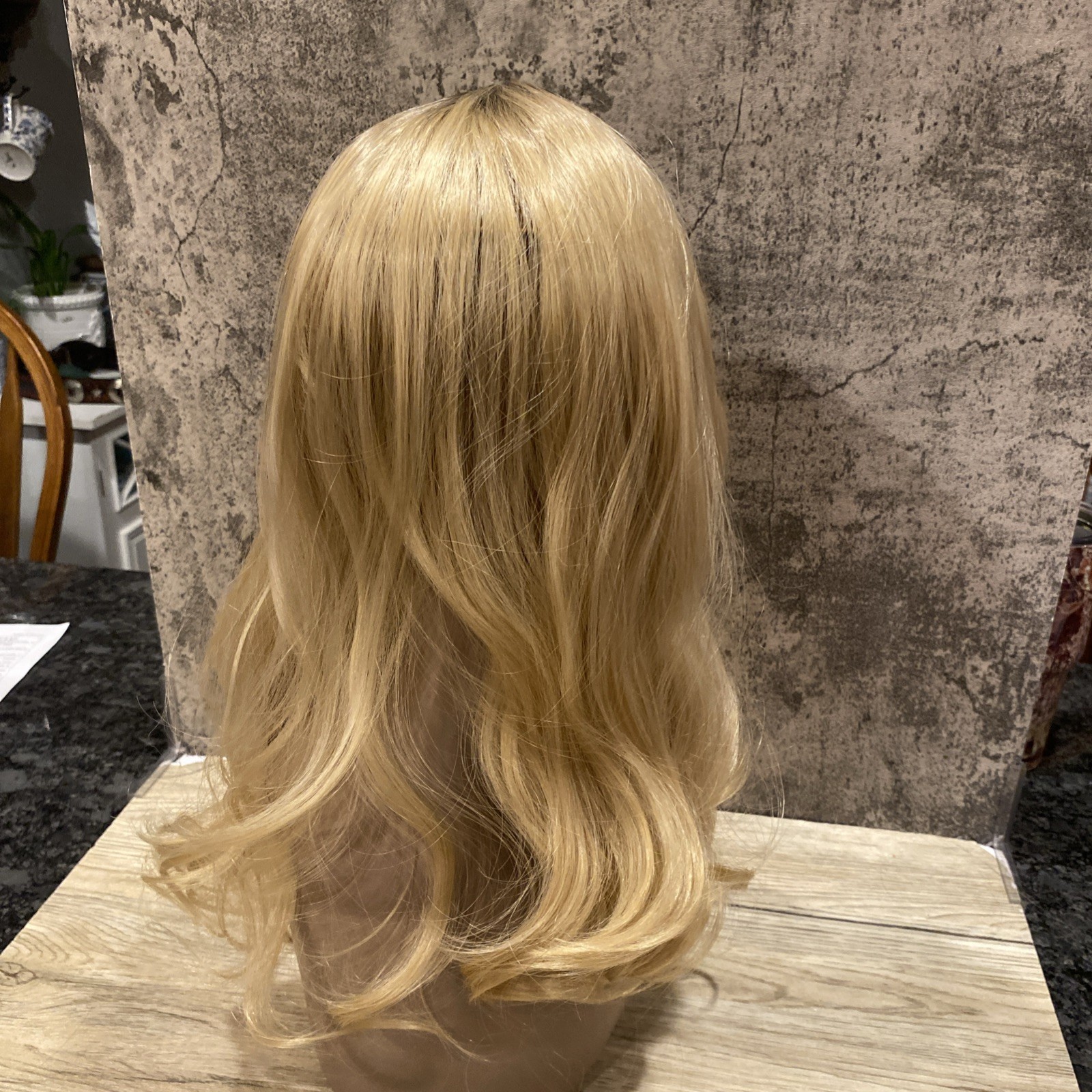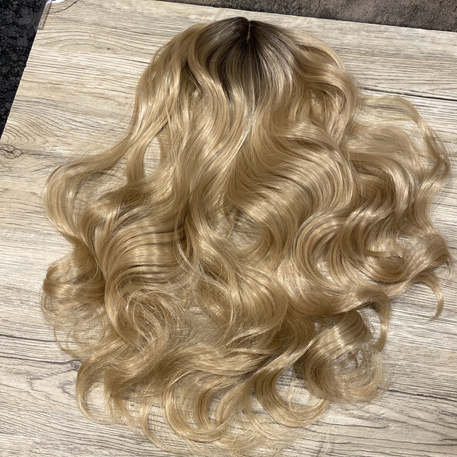 Long hair synthetic topper blonde wavy hair -brown roots- No Bangs rooted blonde