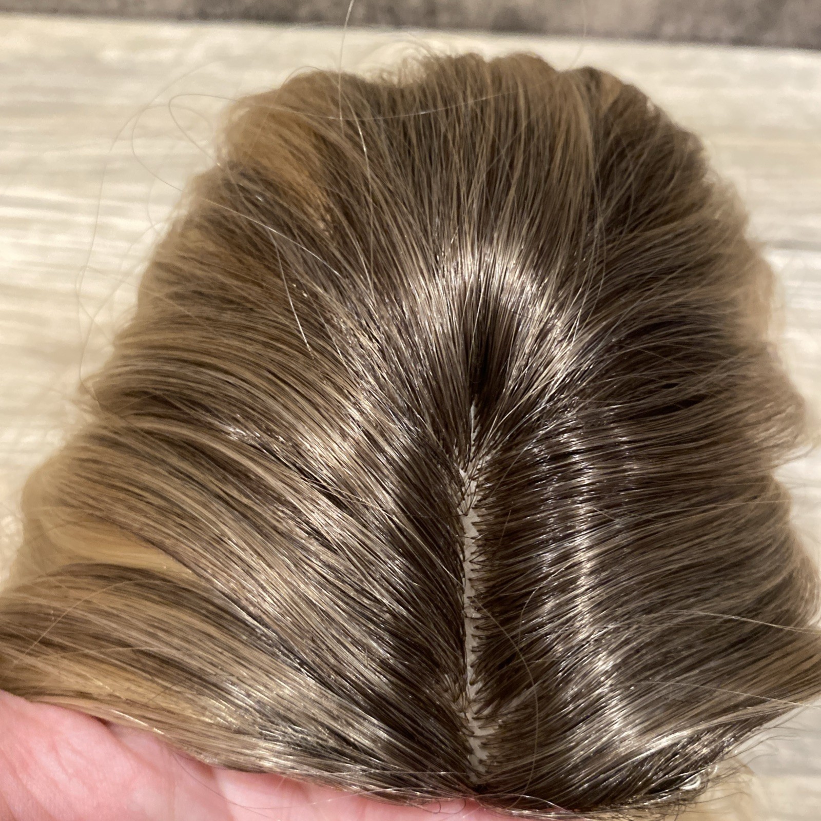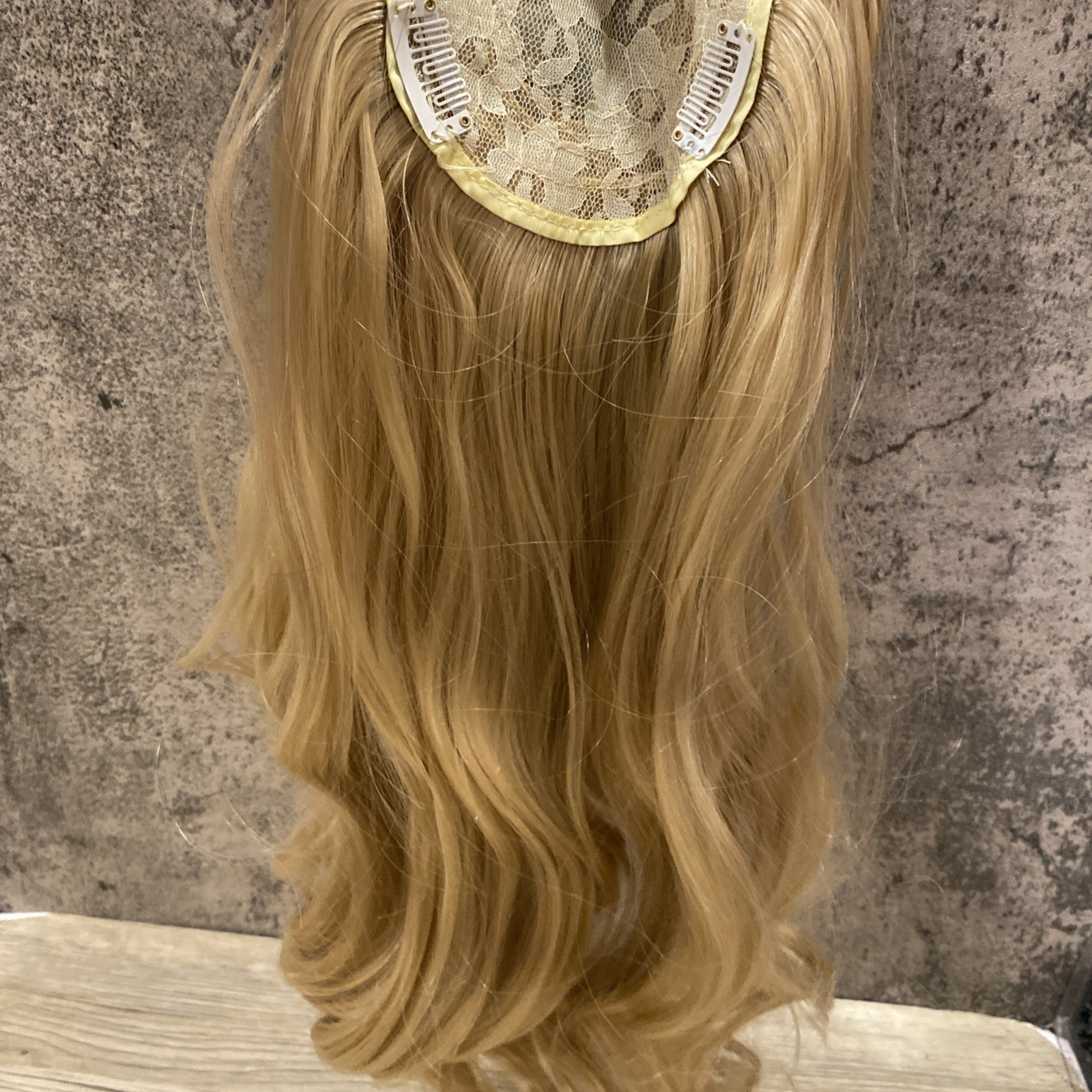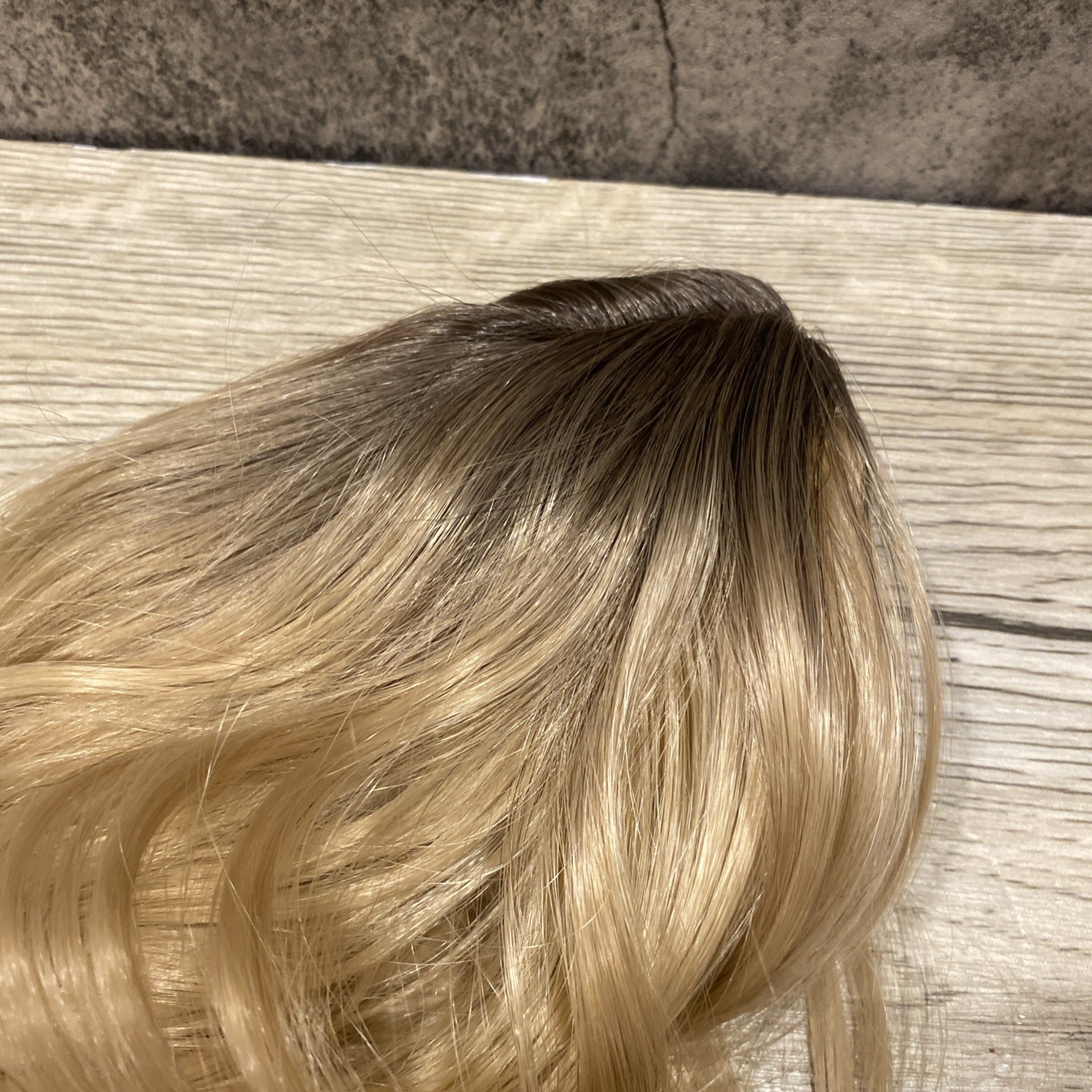 Long hair synthetic topper blonde wavy hair -brown roots- No Bangs rooted blonde